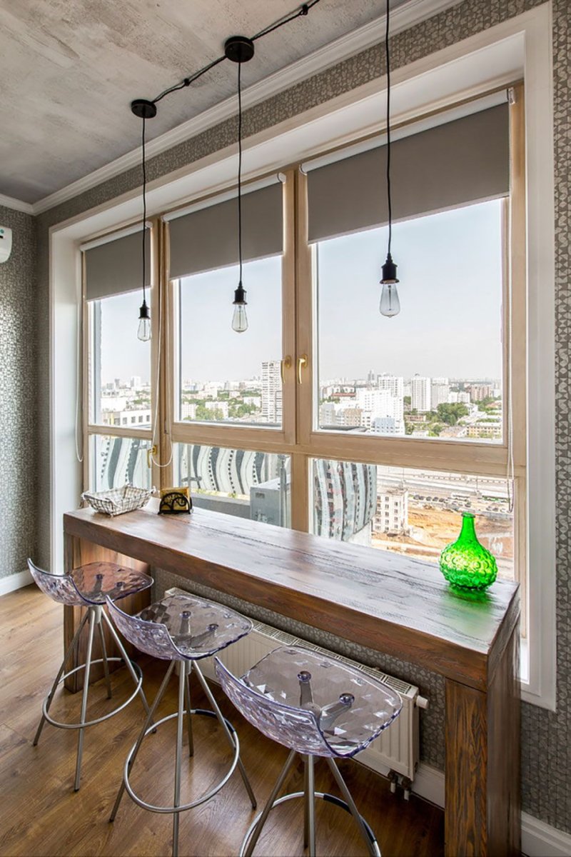 Барная стойка у окна на кухне