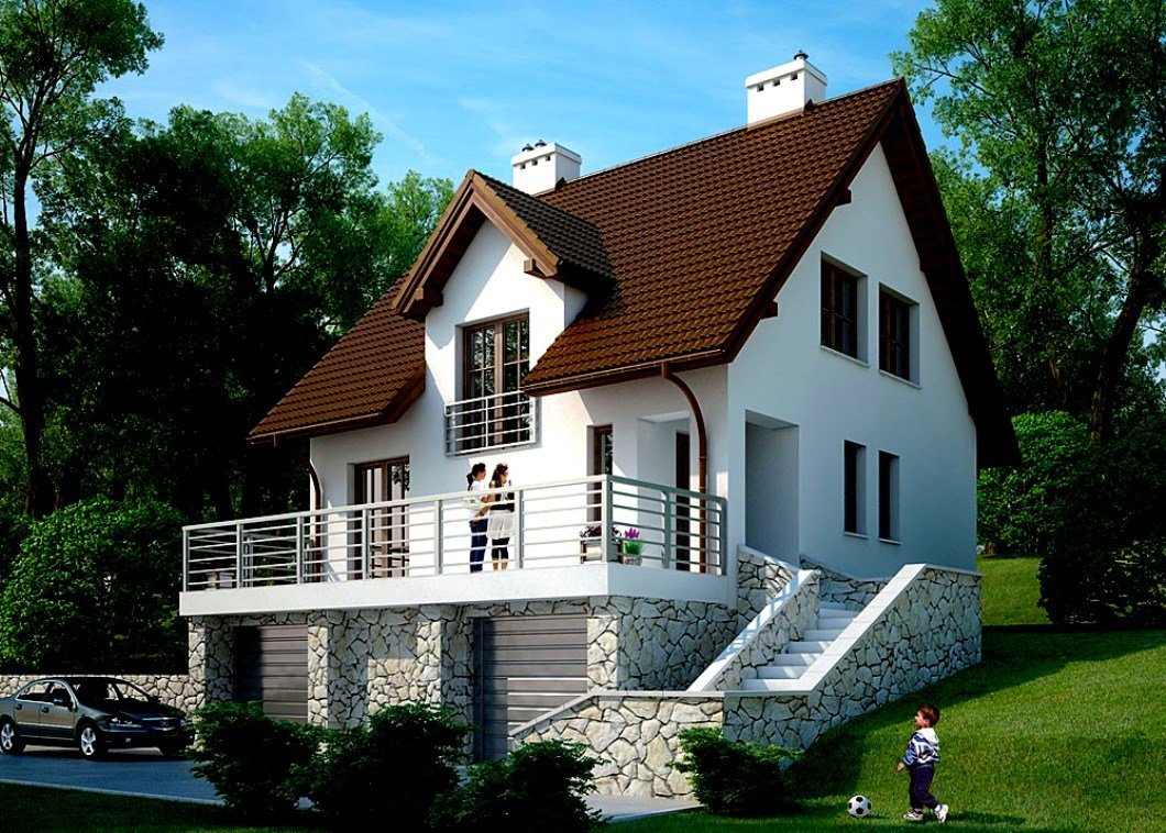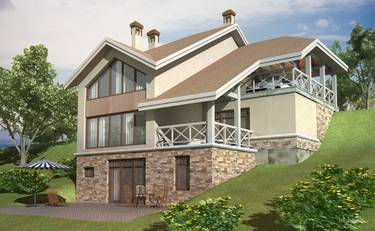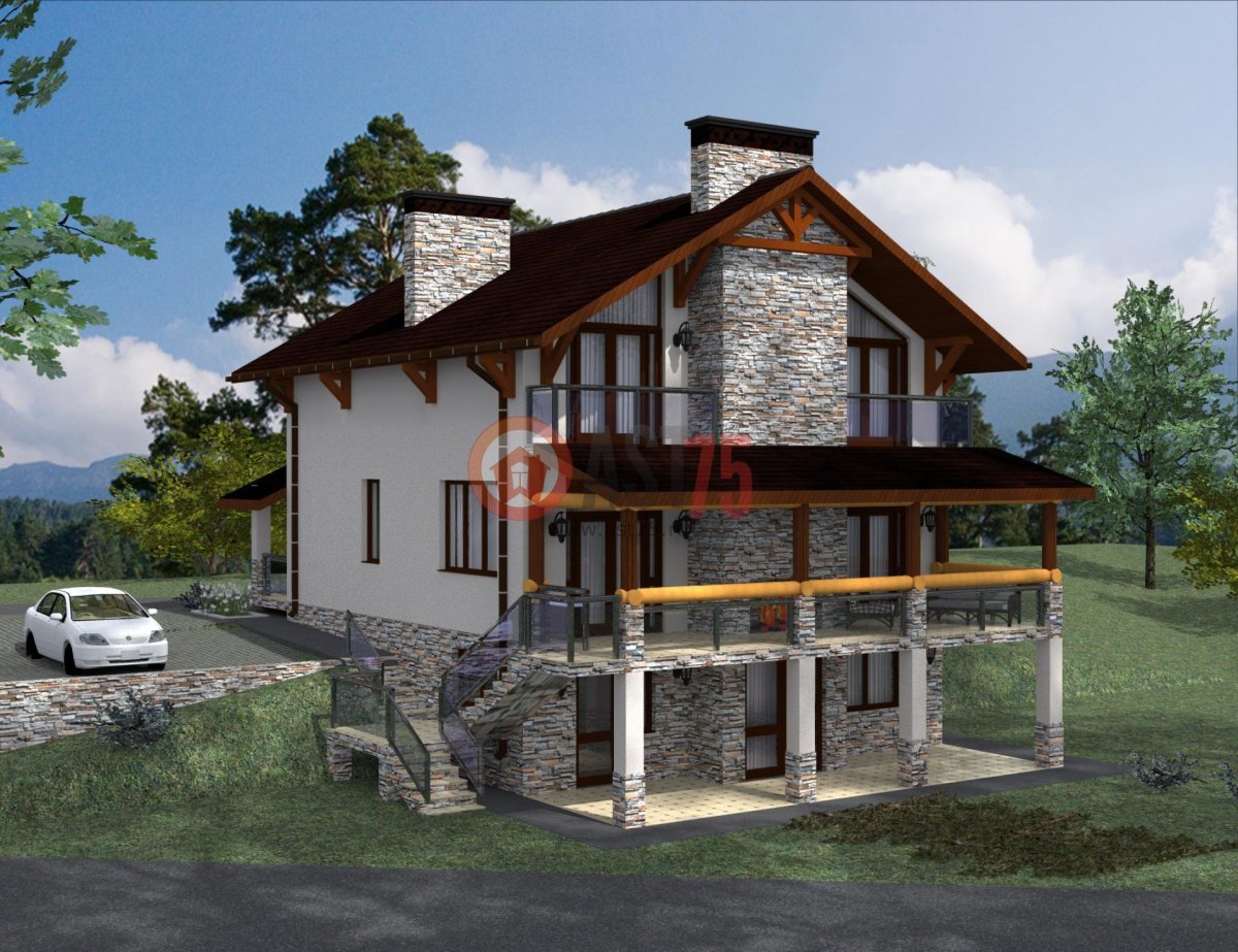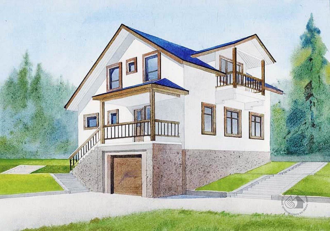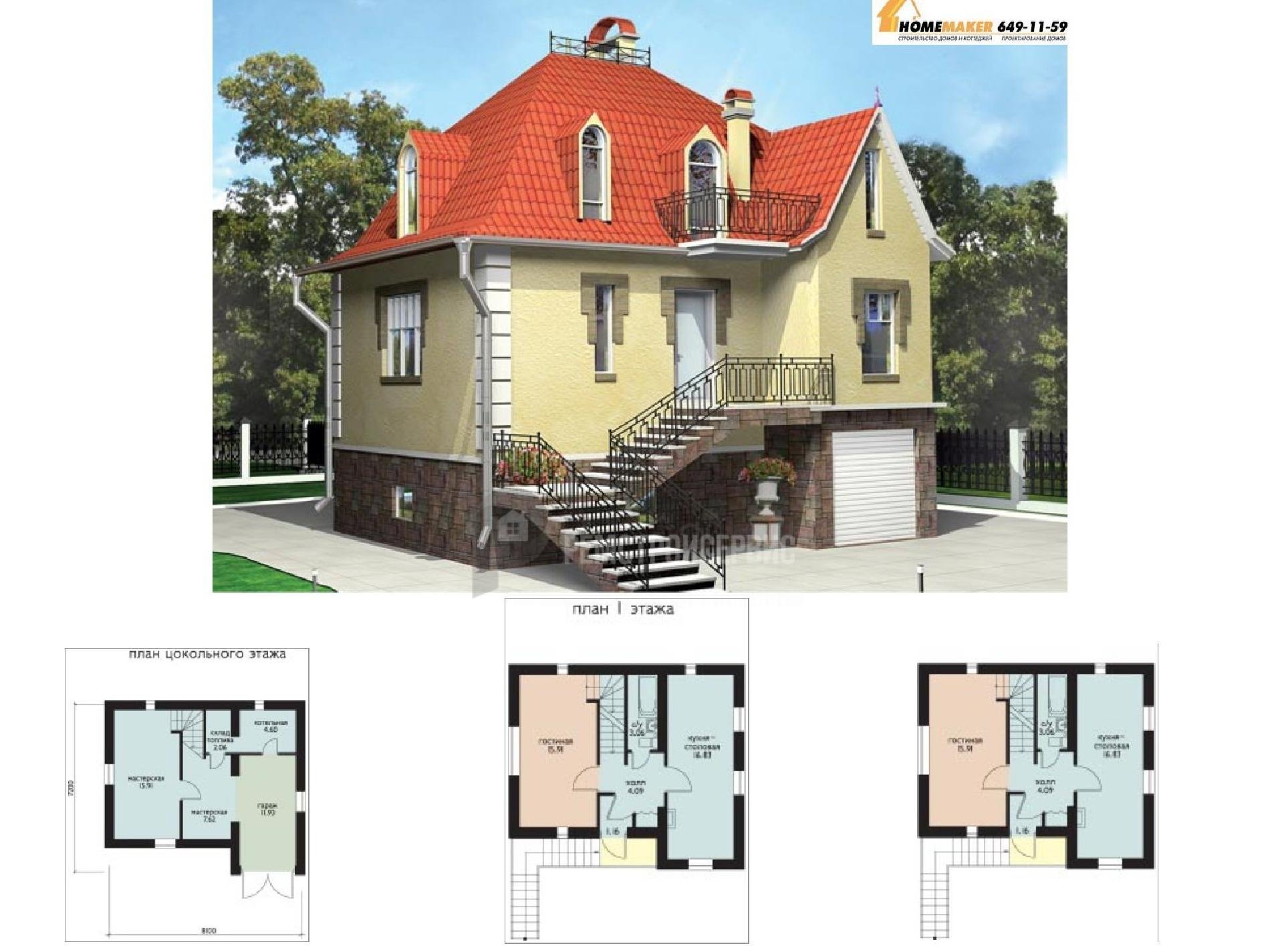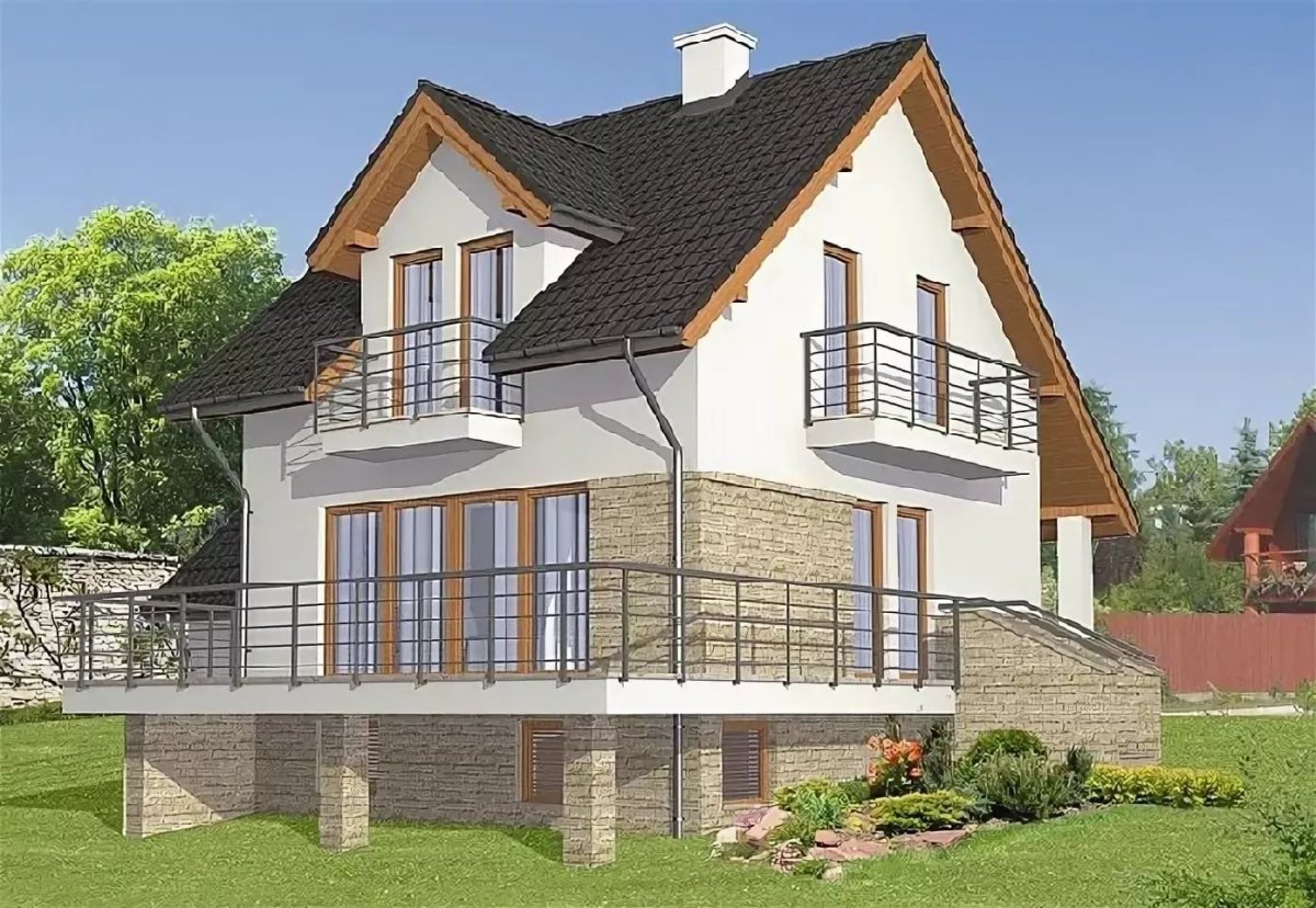 Проект 2 этажного дома с мансардой и цокольным этажом