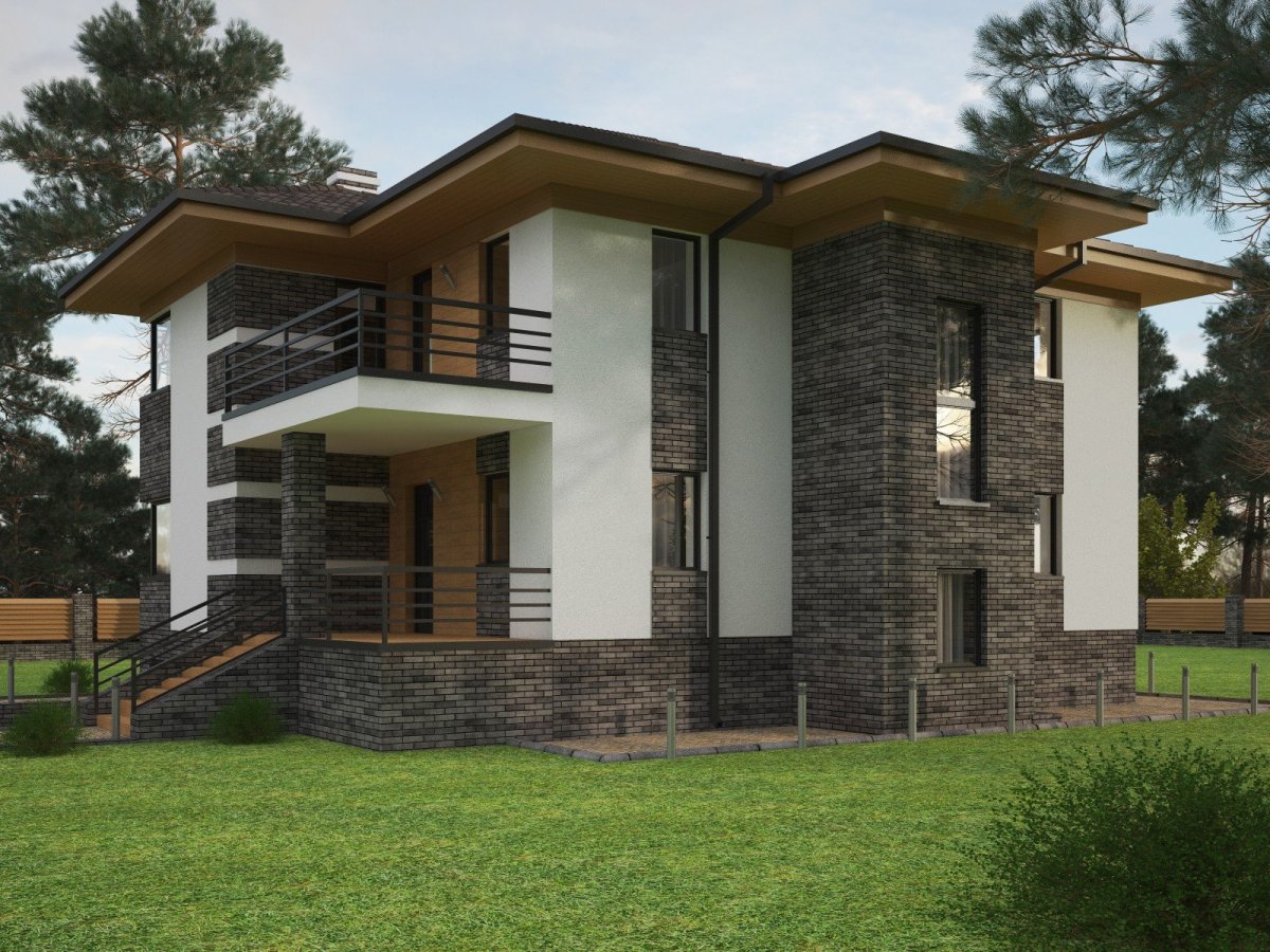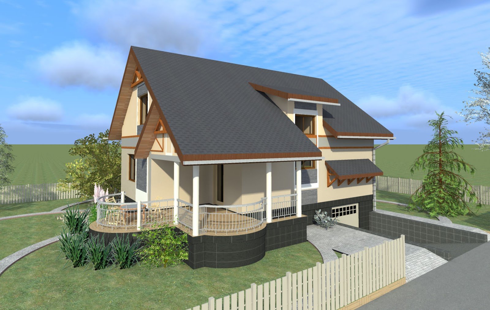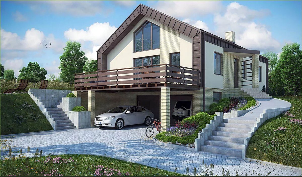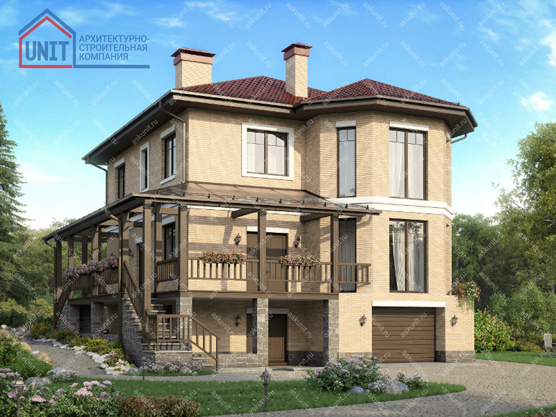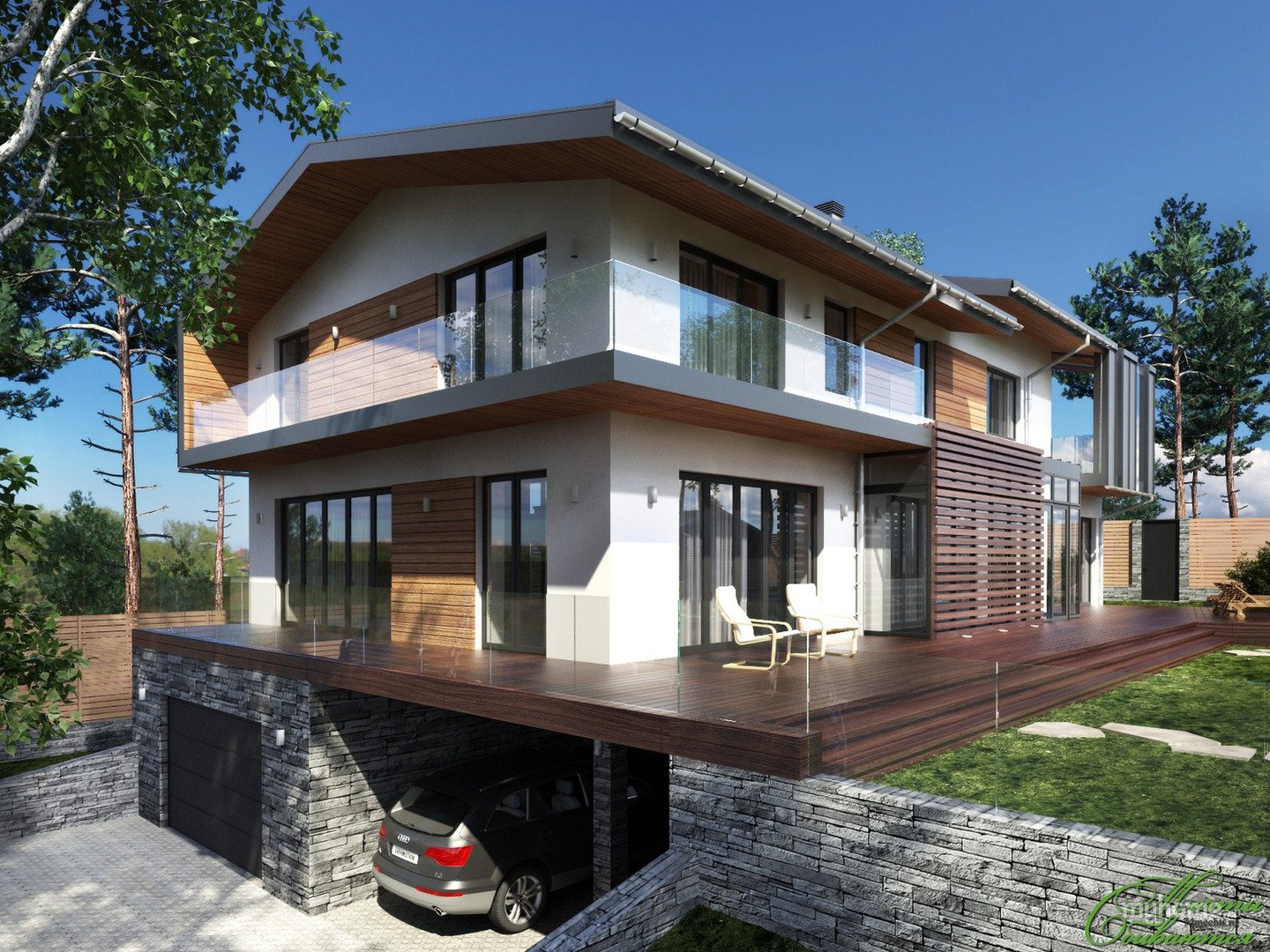 Проект 2 этажного дома с мансардой и цокольным этажом