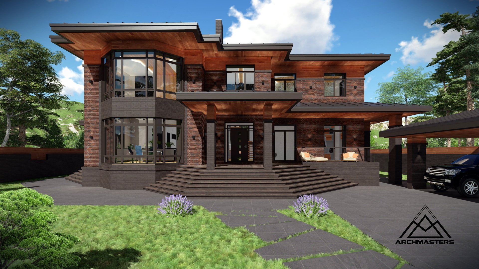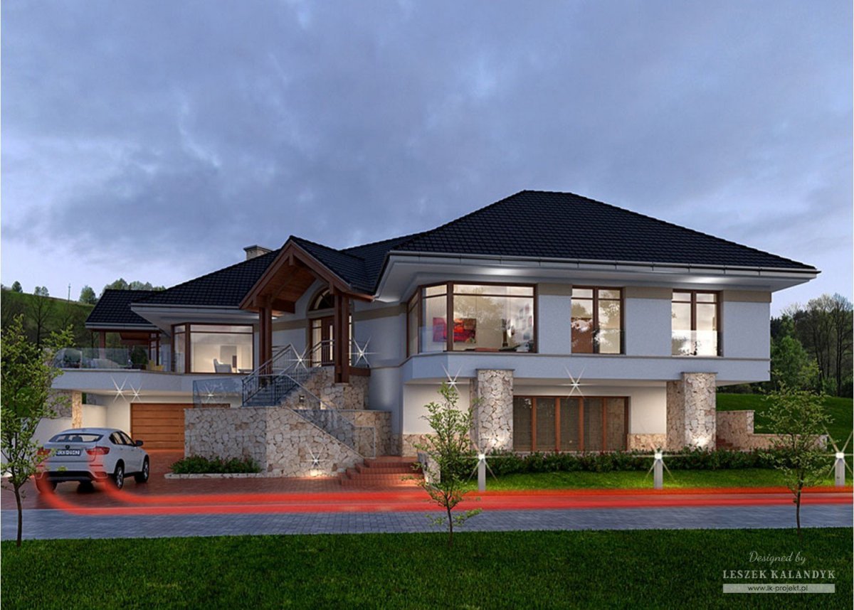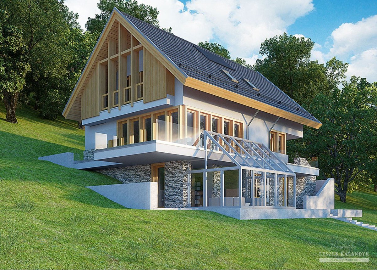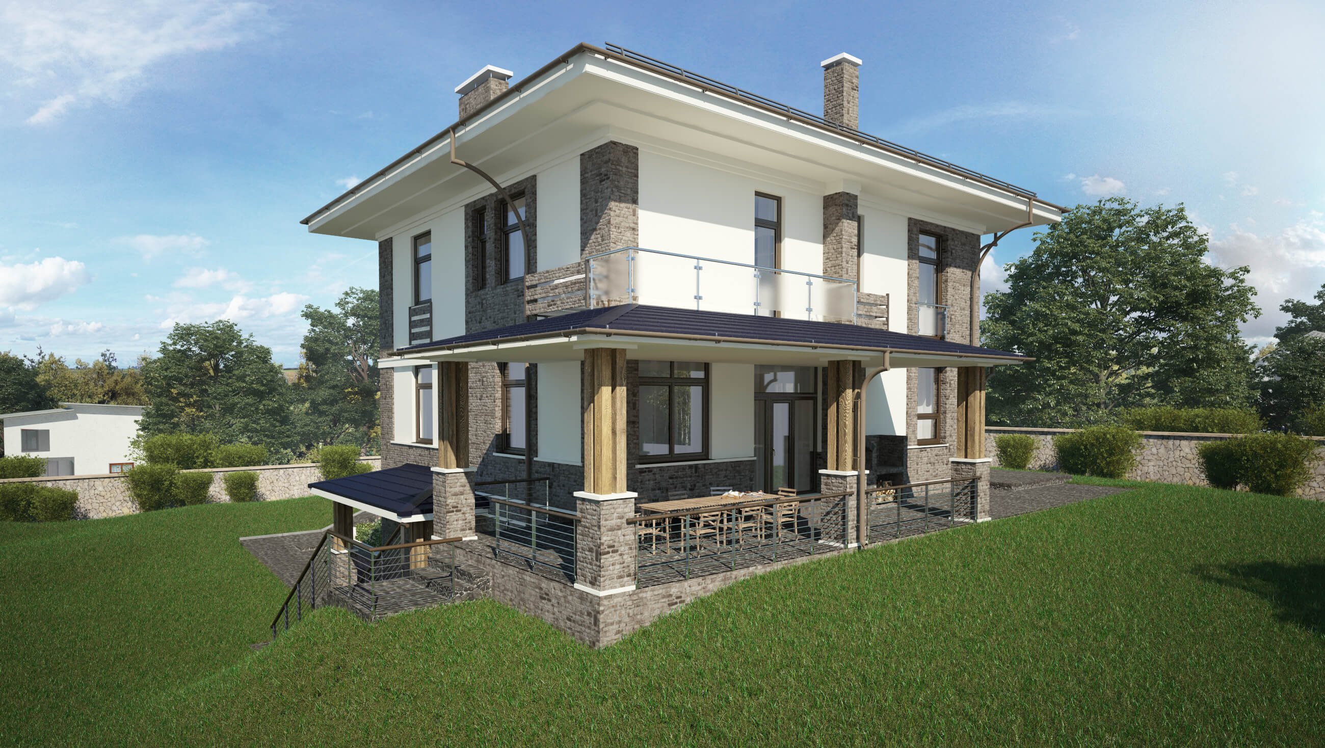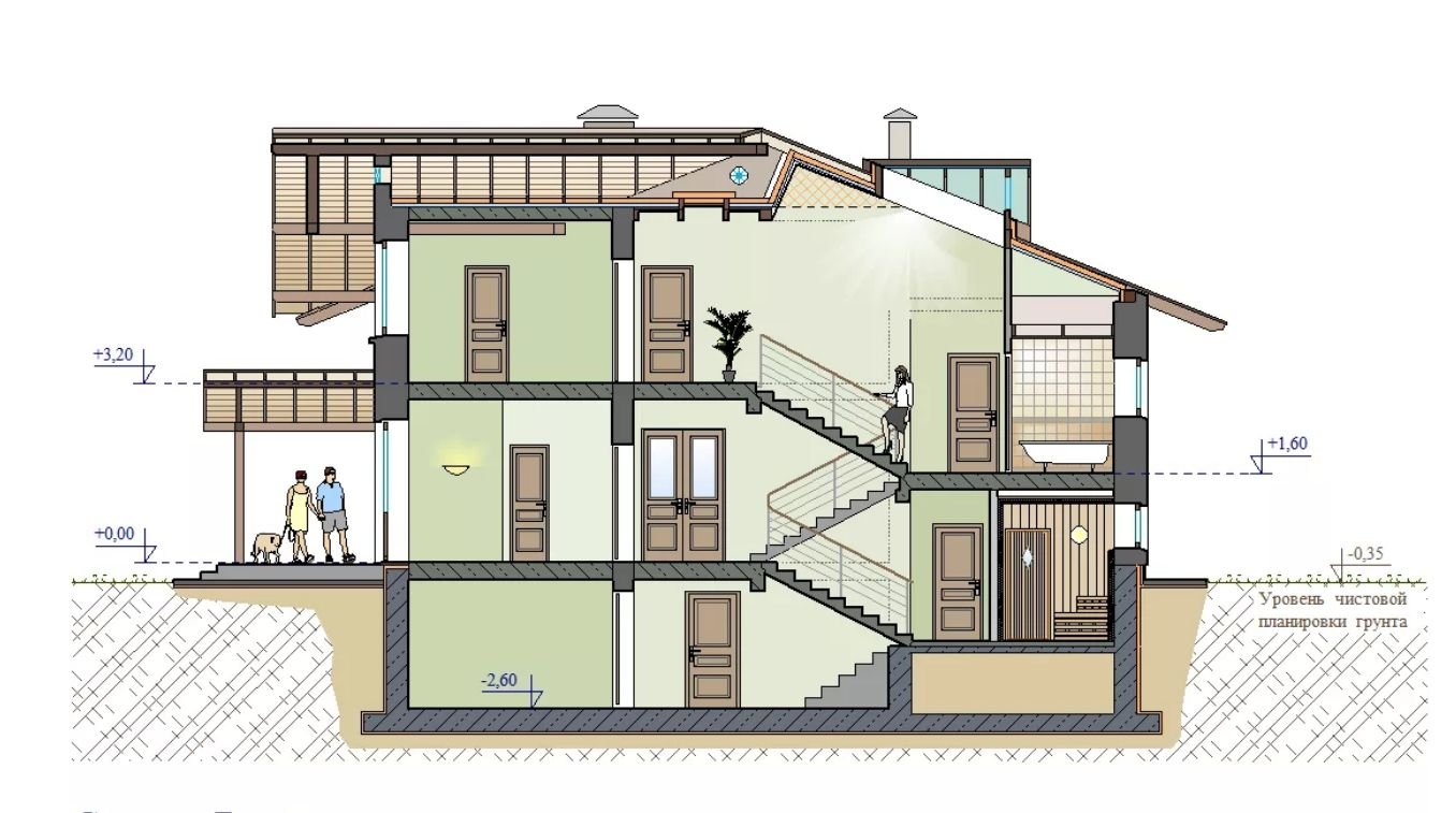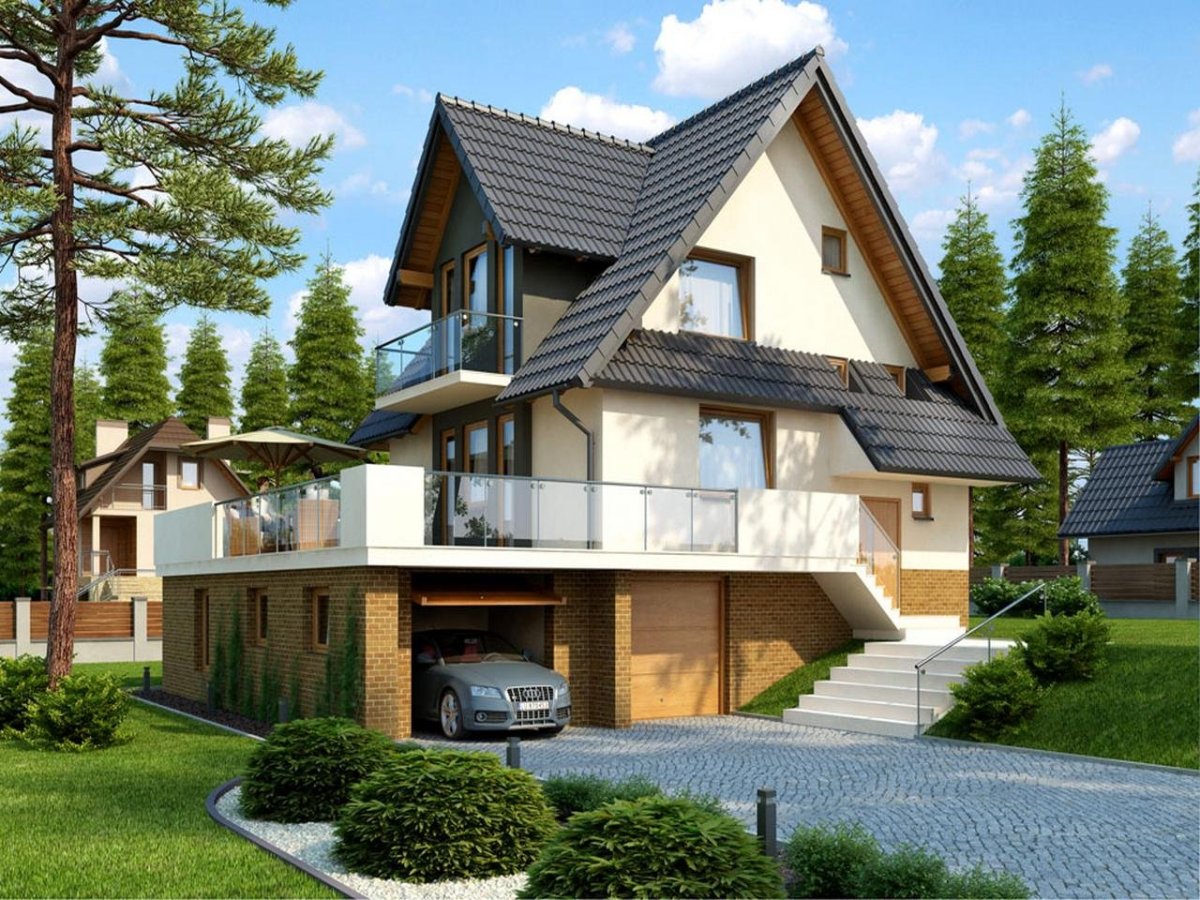 Проект 2 этажного дома с мансардой и цокольным этажом