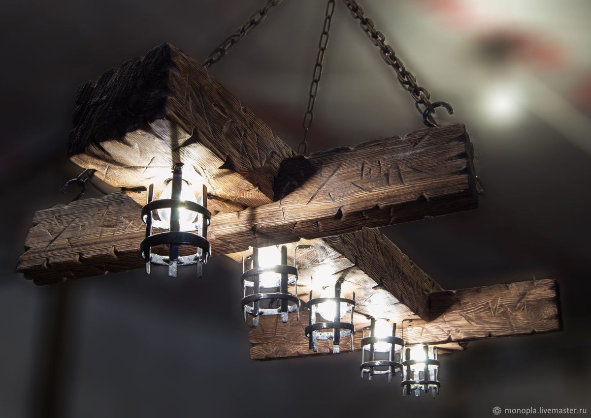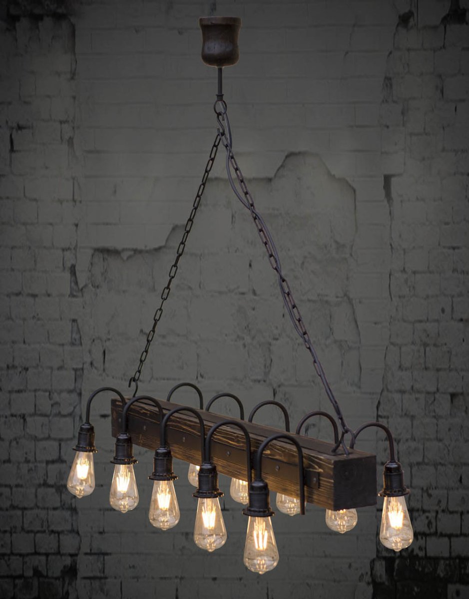 Люстра лофт из дерева и металла на 10 ламп 118 Loft