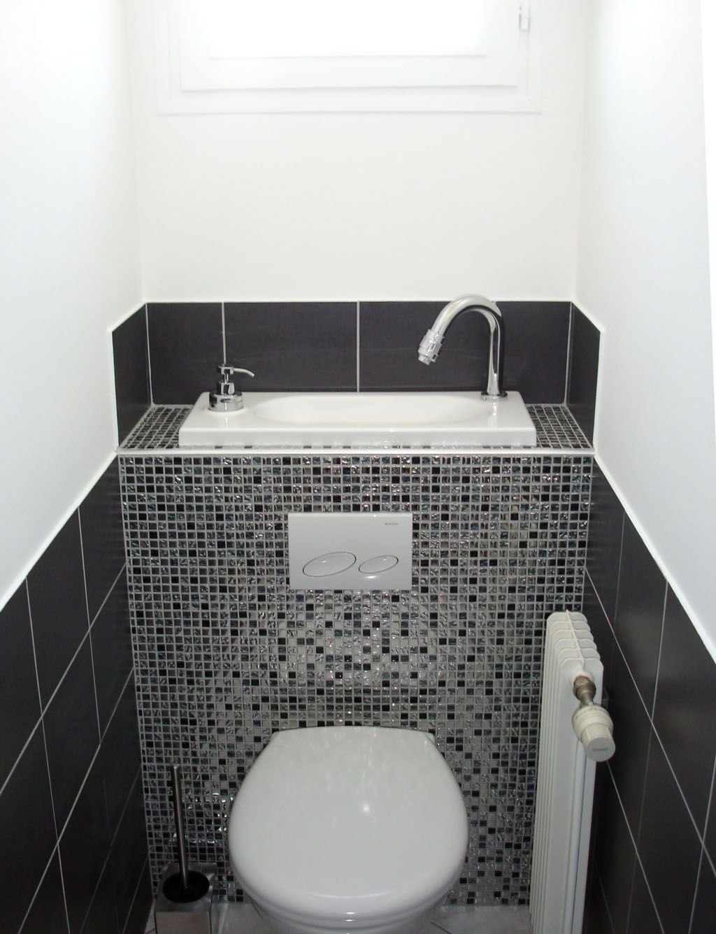 Туалетная комната с инсталляцией и раковиной