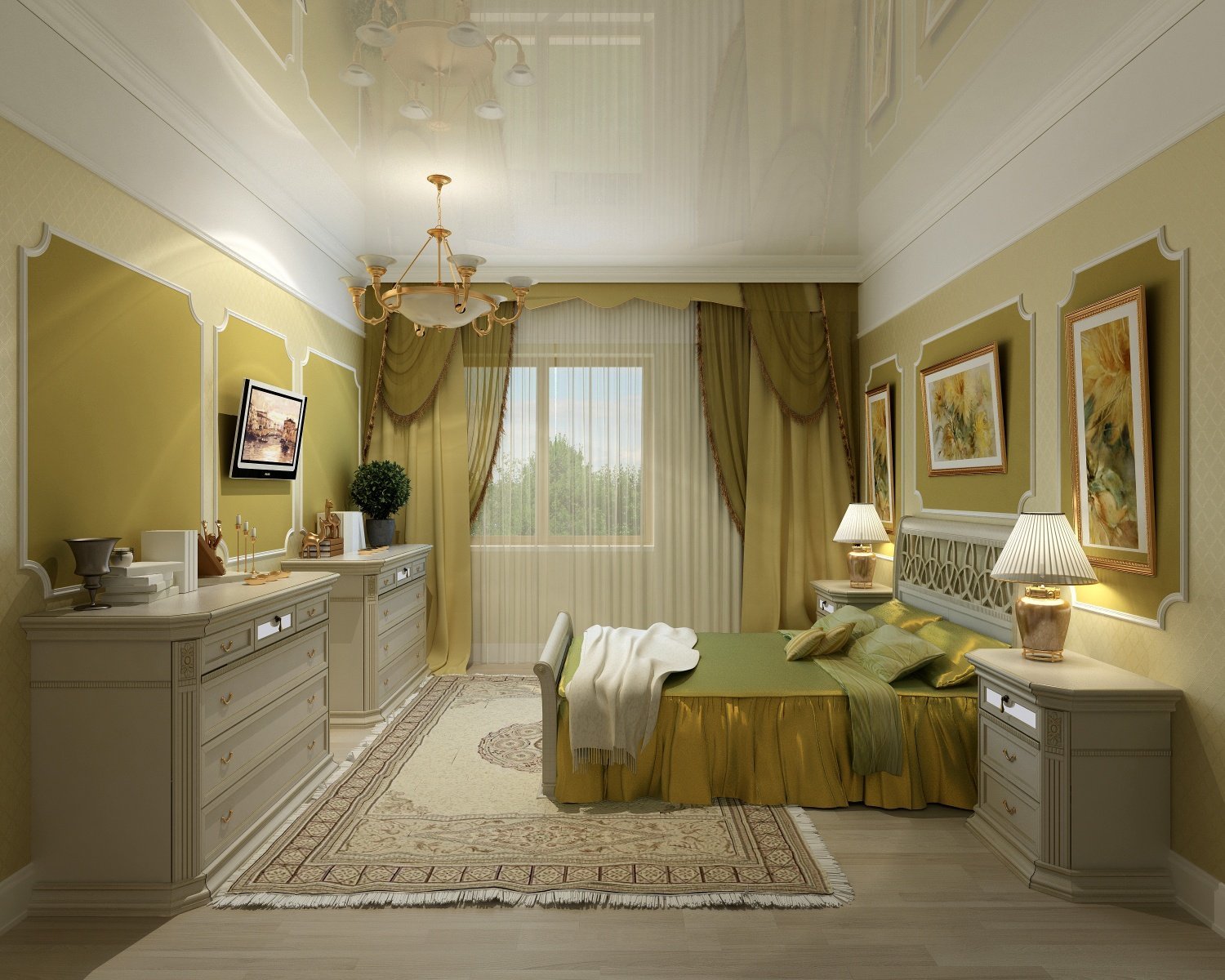Спальня в стиле Прованс в оливковых тонах