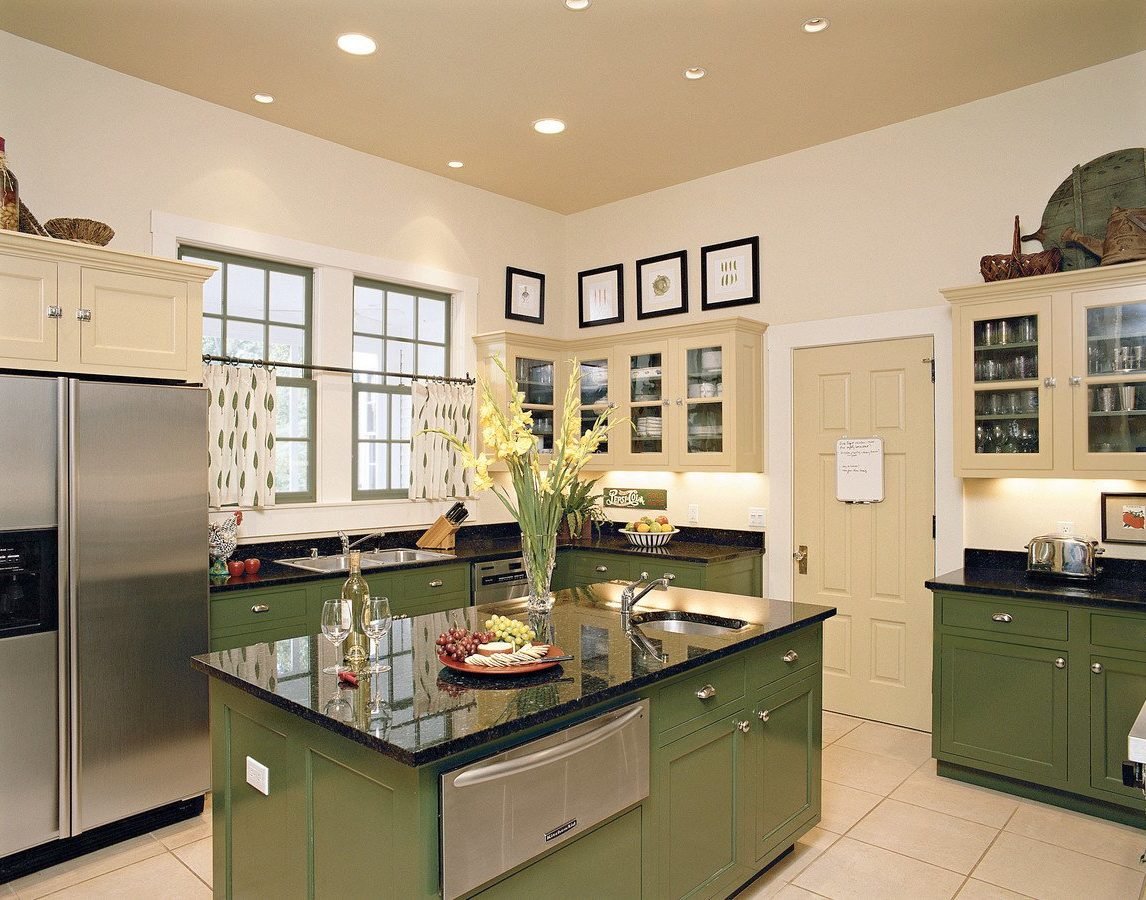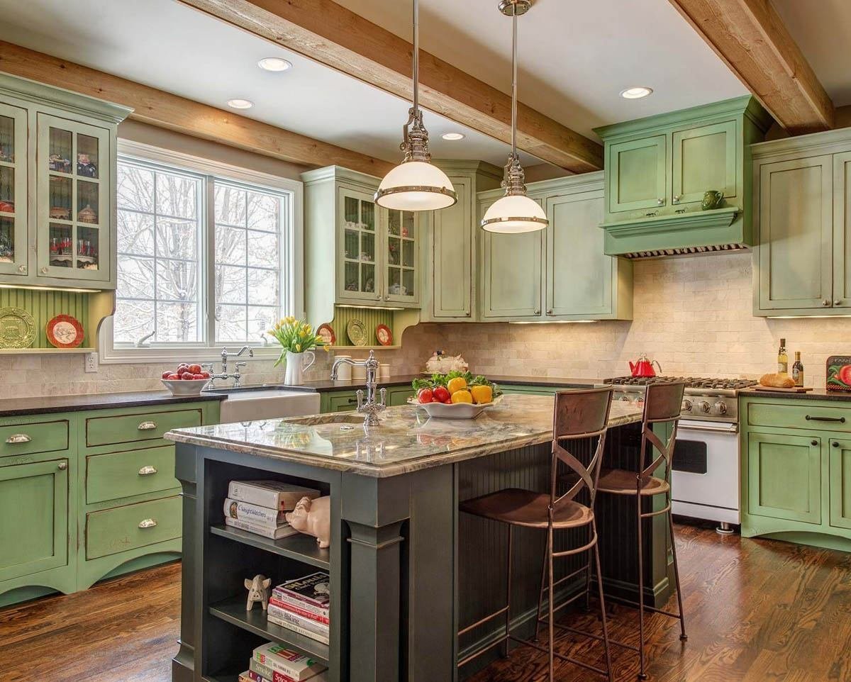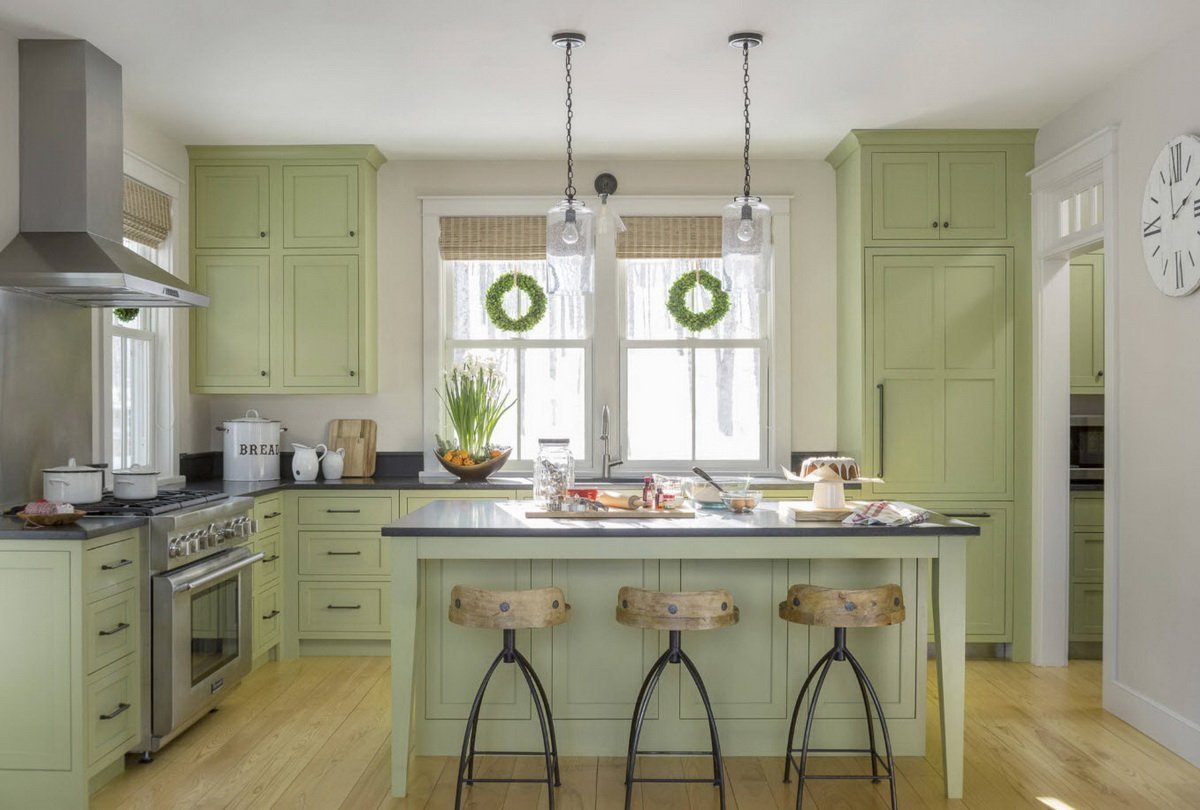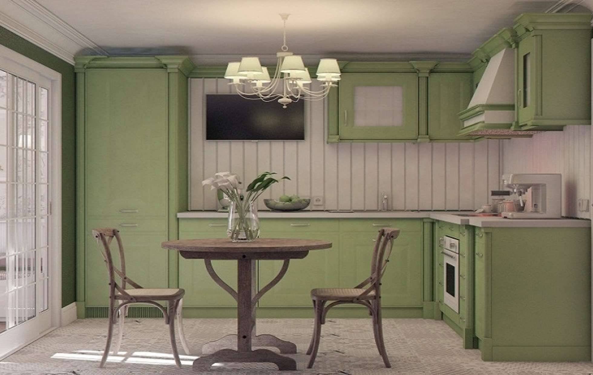Кухни фисташкового цвета в стиле Кантри