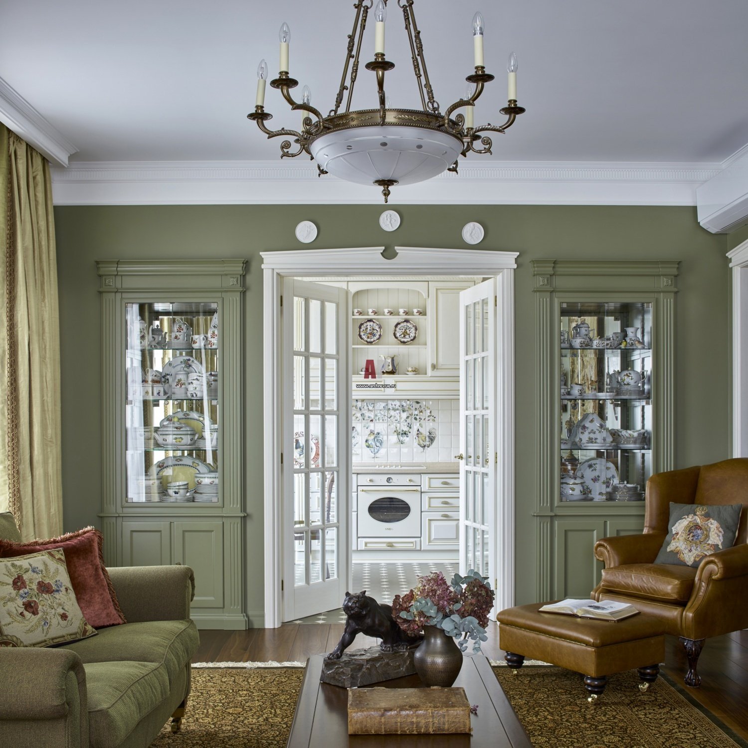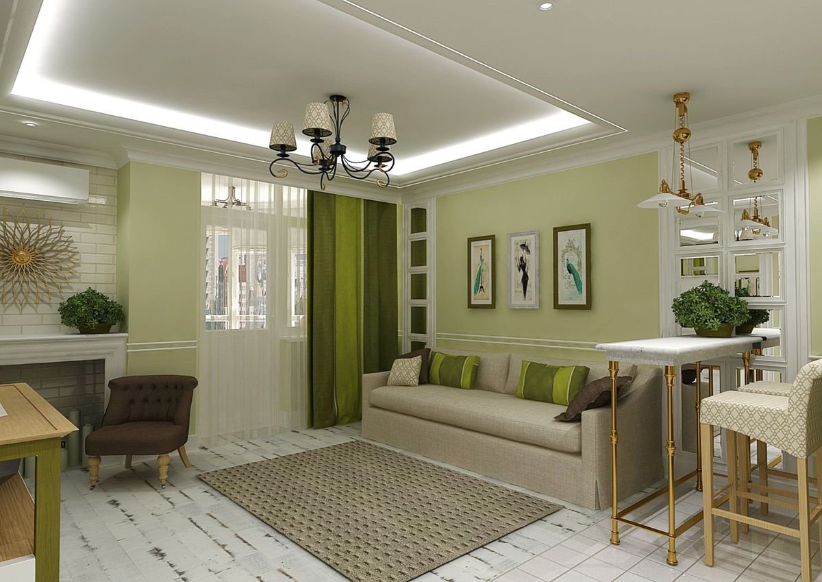 Оливковый цвет в интерьере гостиной