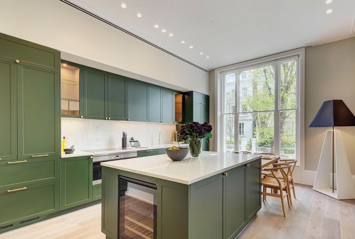 Ремонт кухни в оливковом цвете