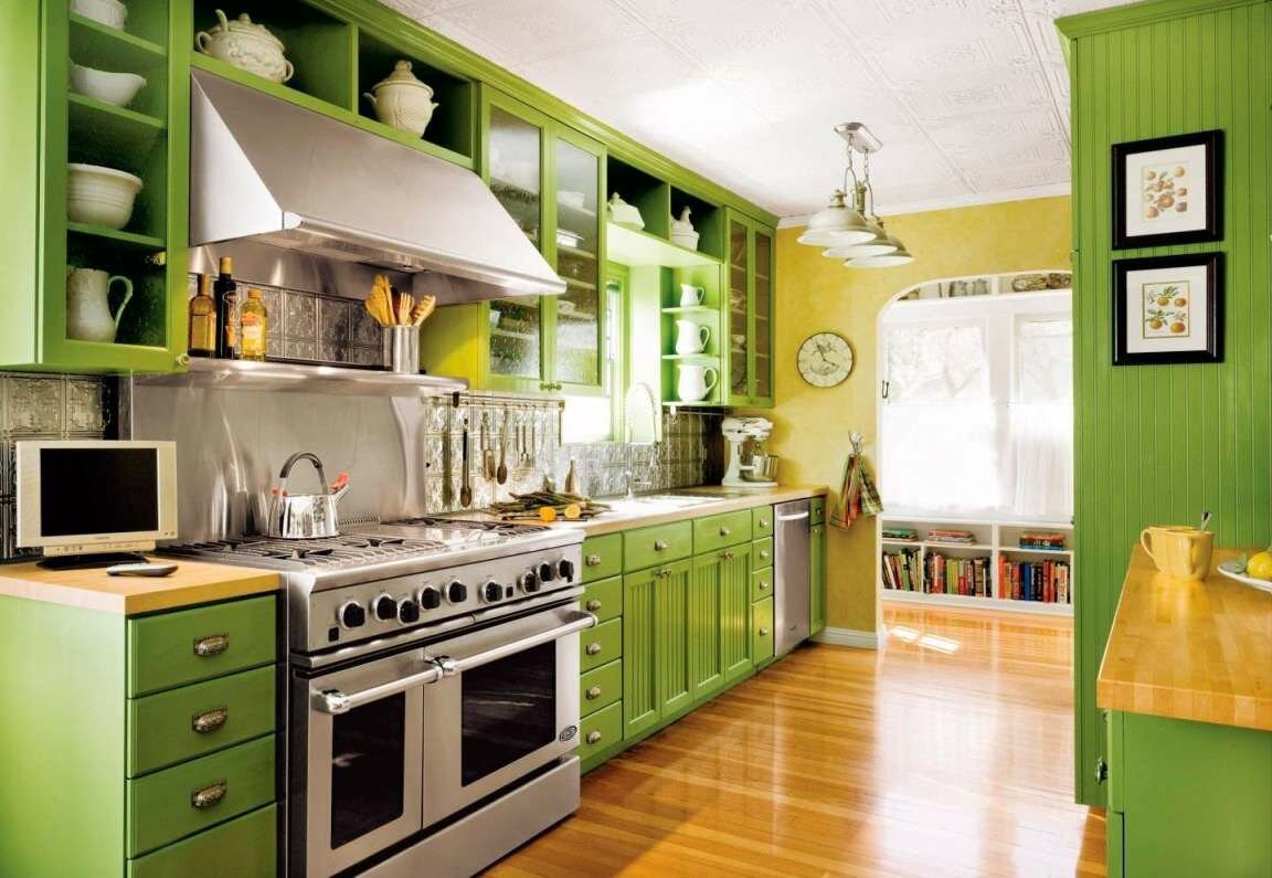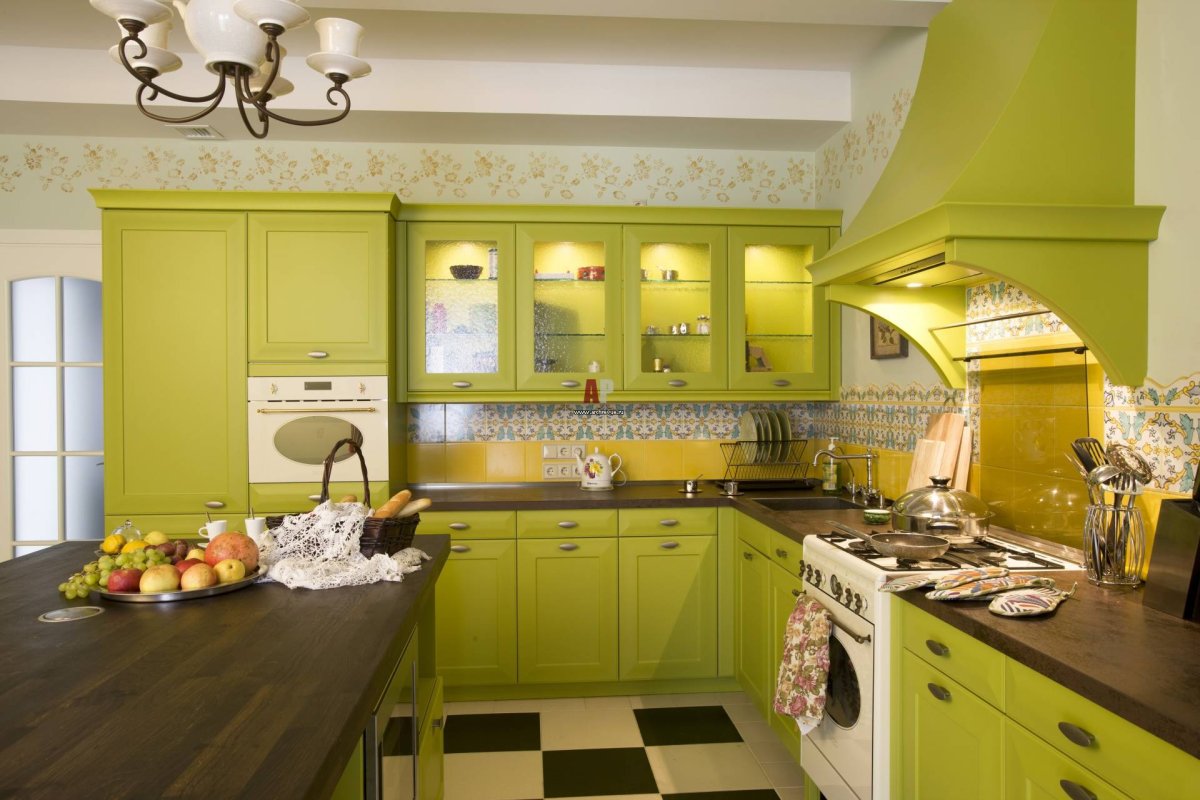 Интерьер кухни в салатовых тонах