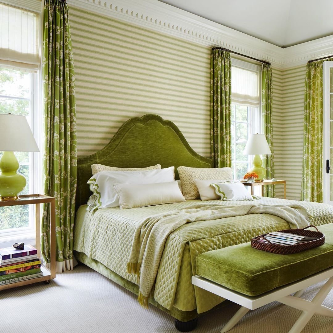 Интерьер спальни в итальянском стиле в зеленых тонах