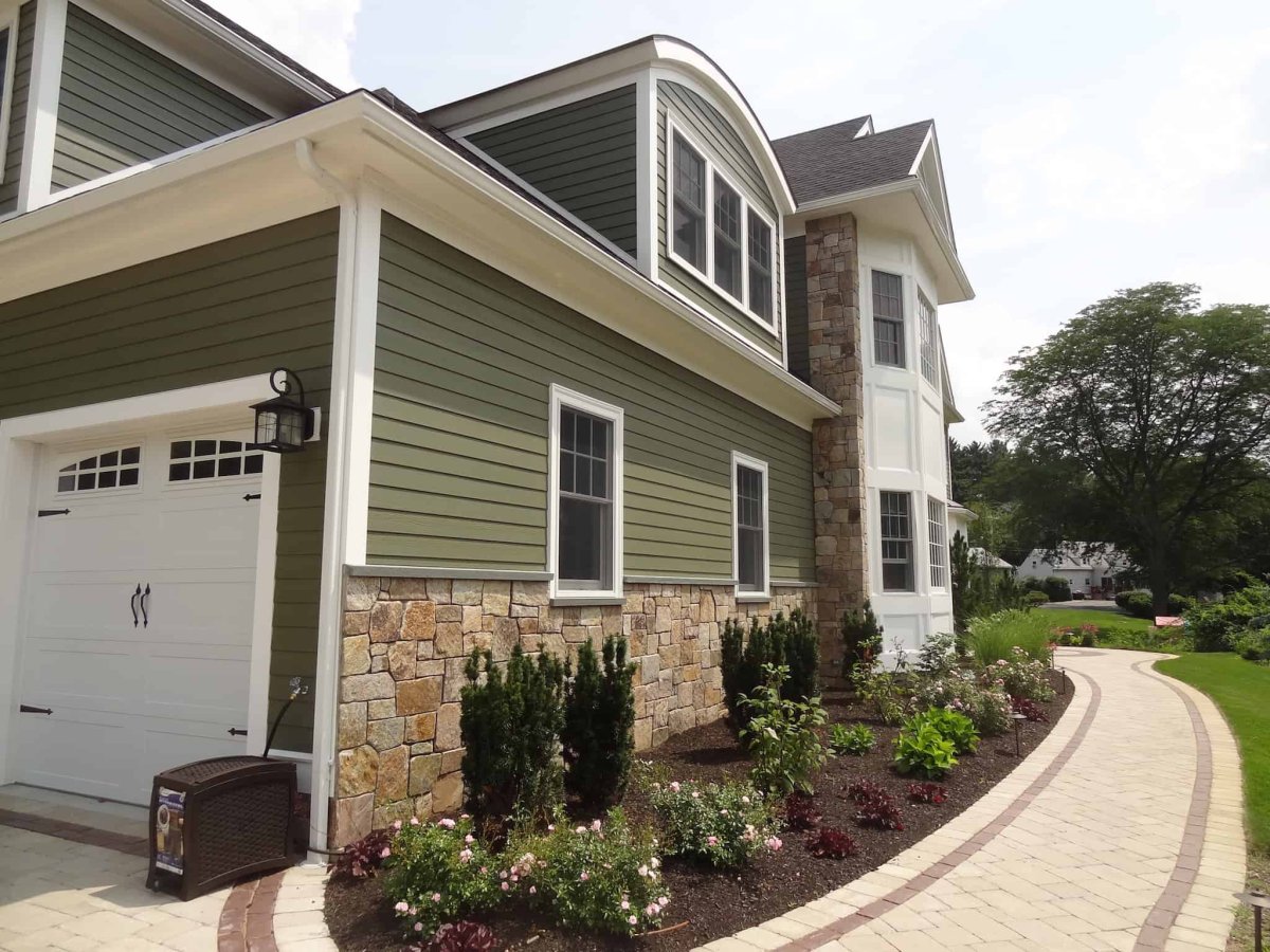Фасад дома оливкового цвета