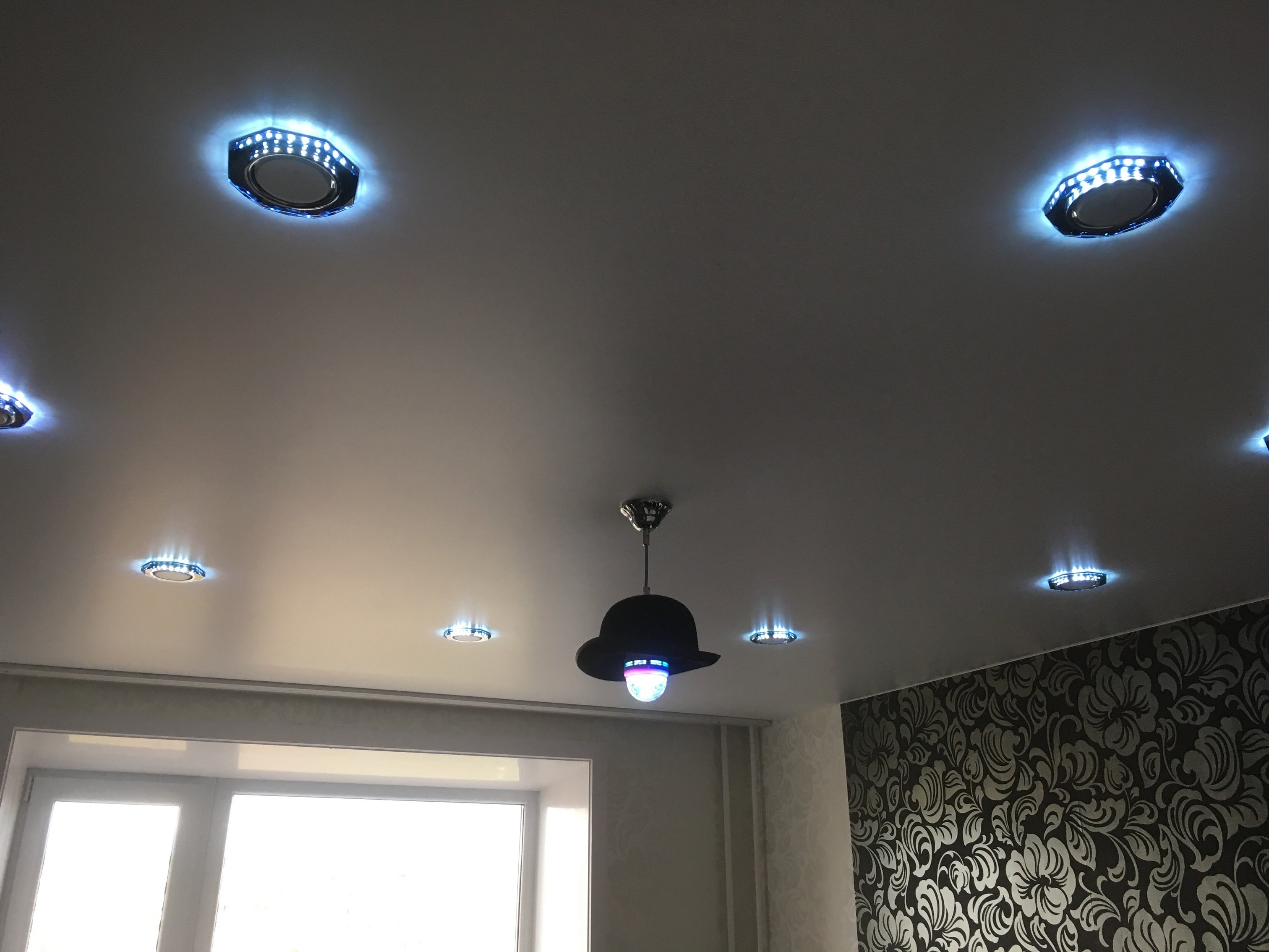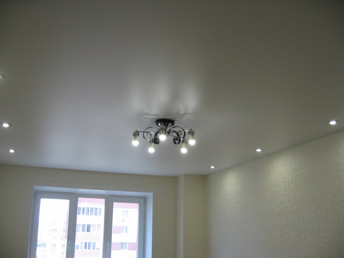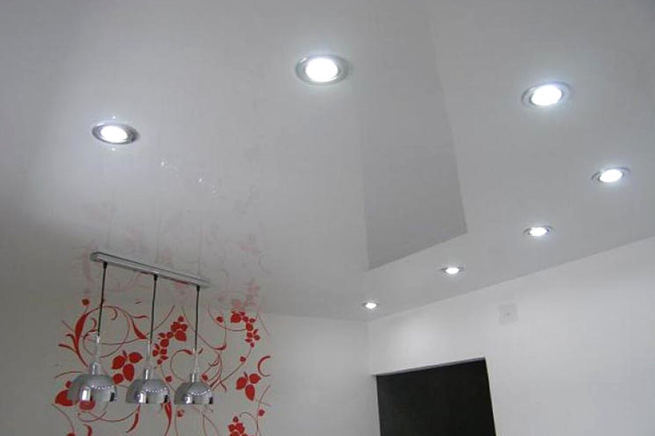 Одноуровневые потолки из гипсокартона с точечными светильниками