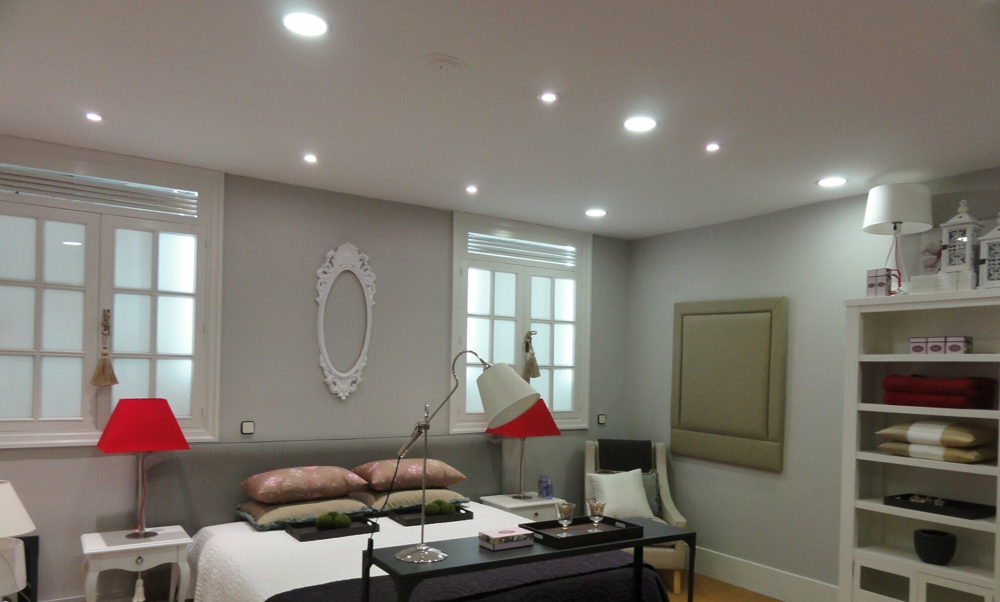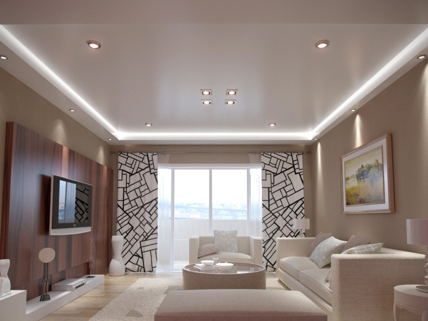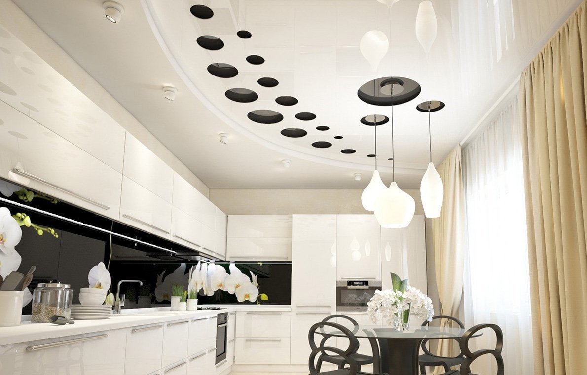Одноуровневые потолки из гипсокартона с точечными светильниками