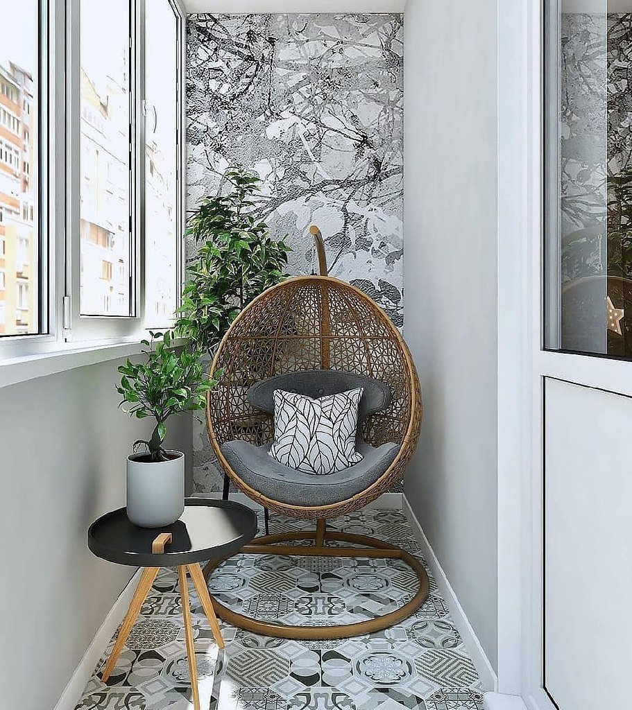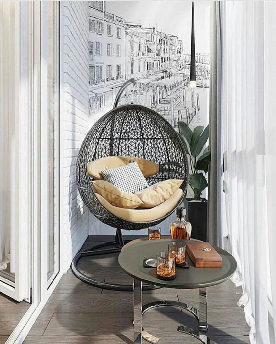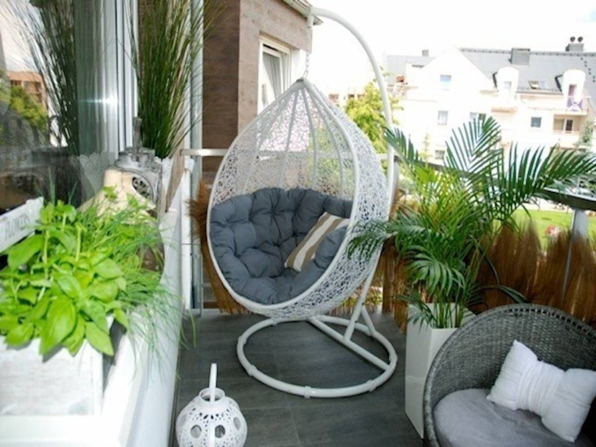 Подвесное кресло на маленьком балконе