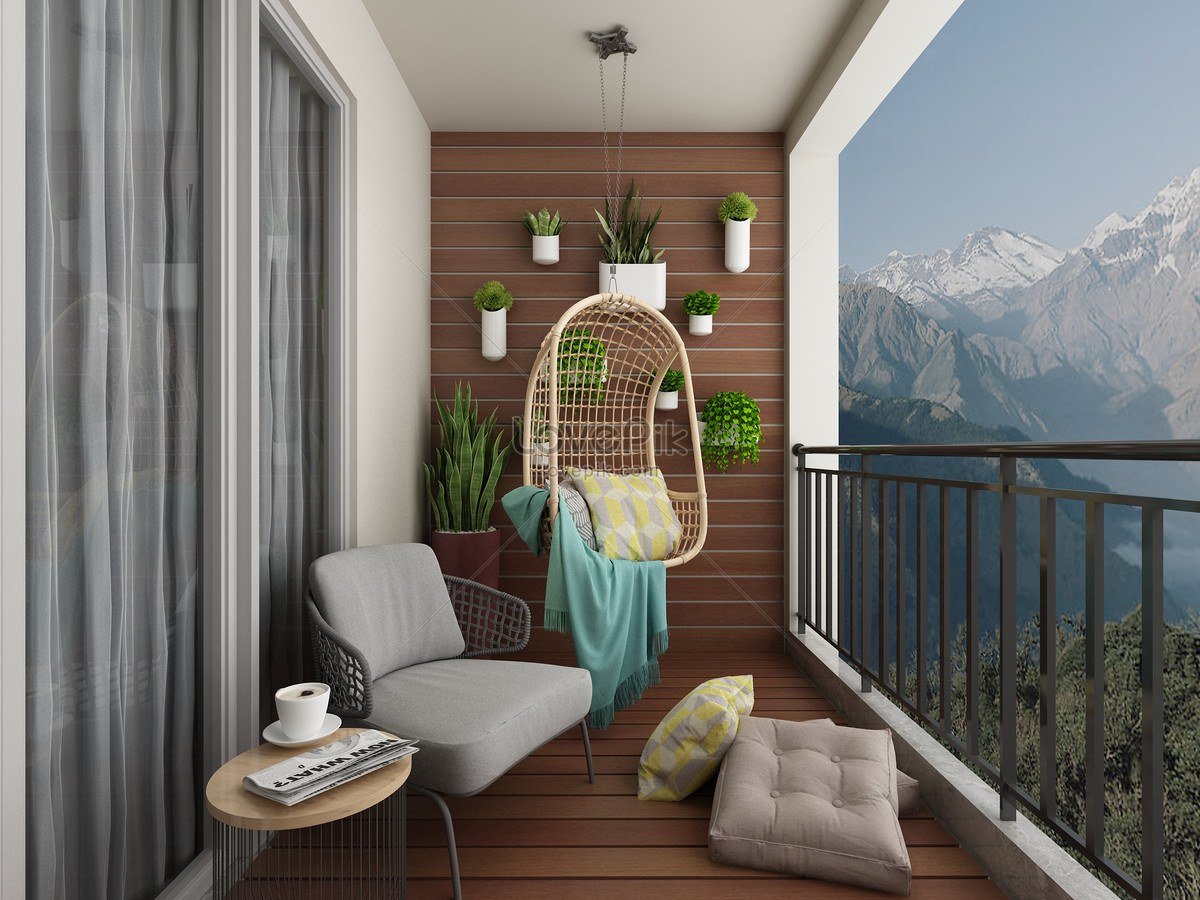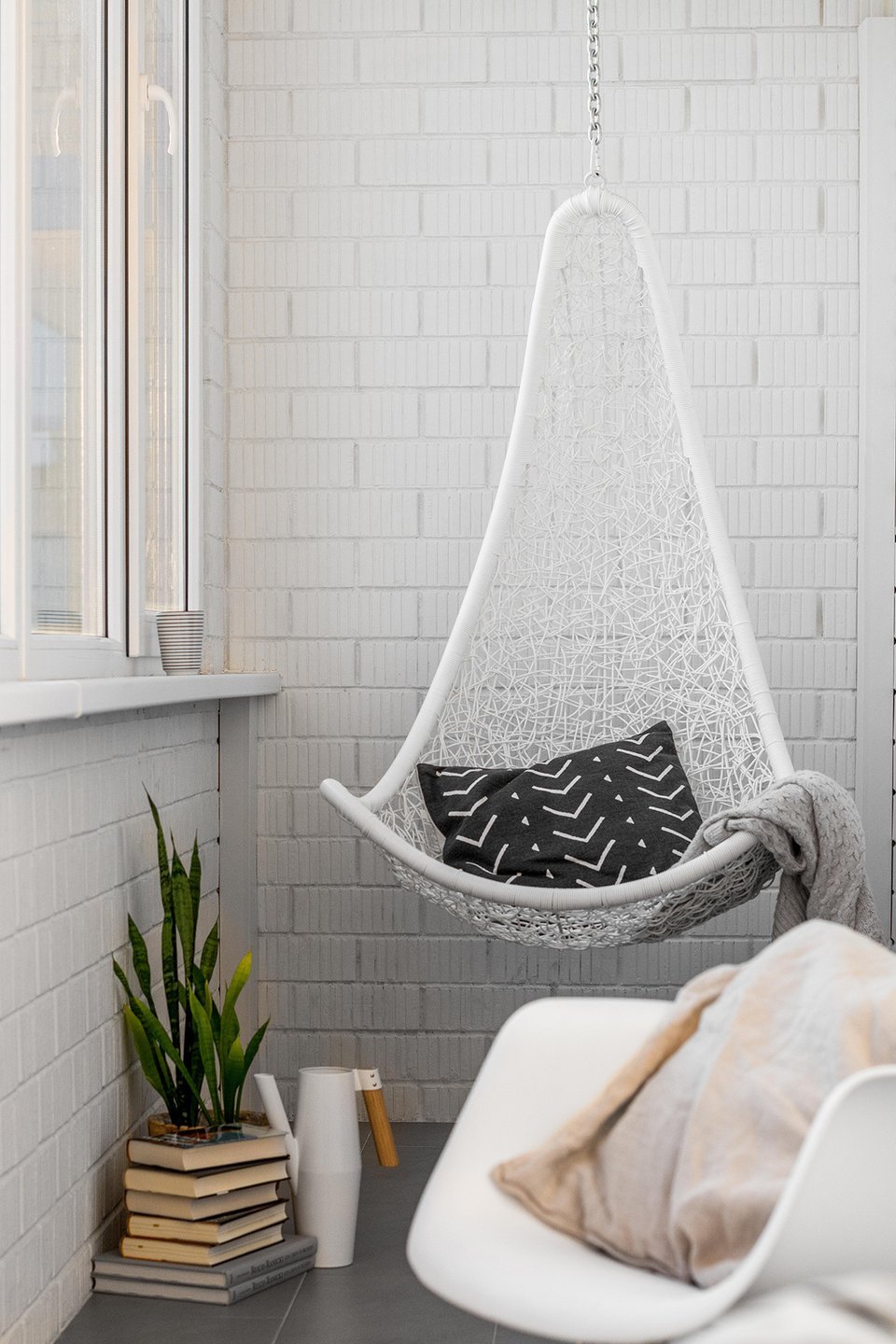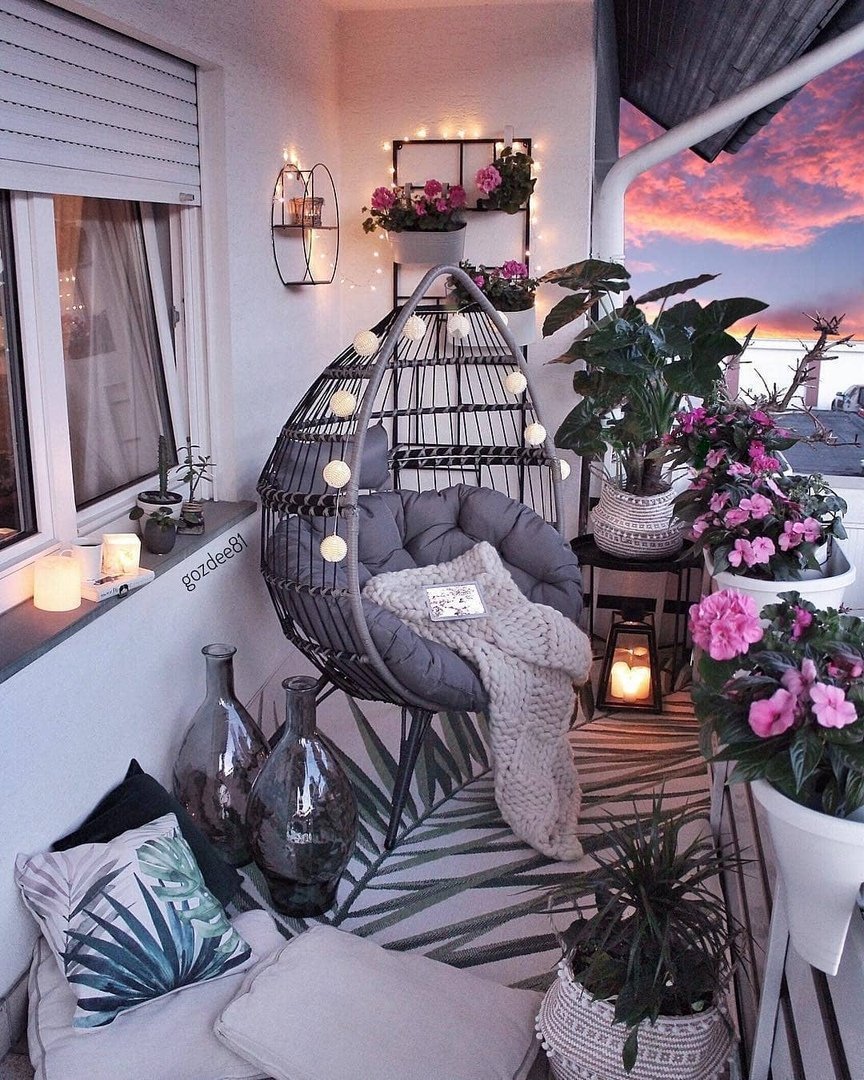 Подвесное кресло на маленьком балконе