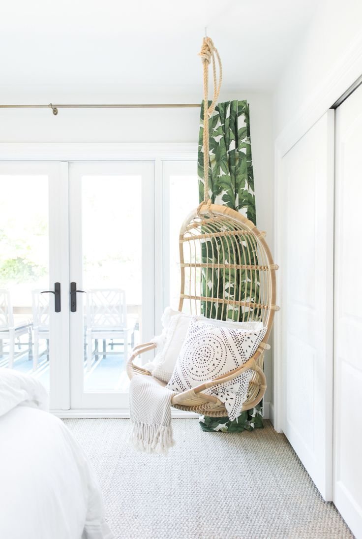 Подвесное кресло в интерьере спальни