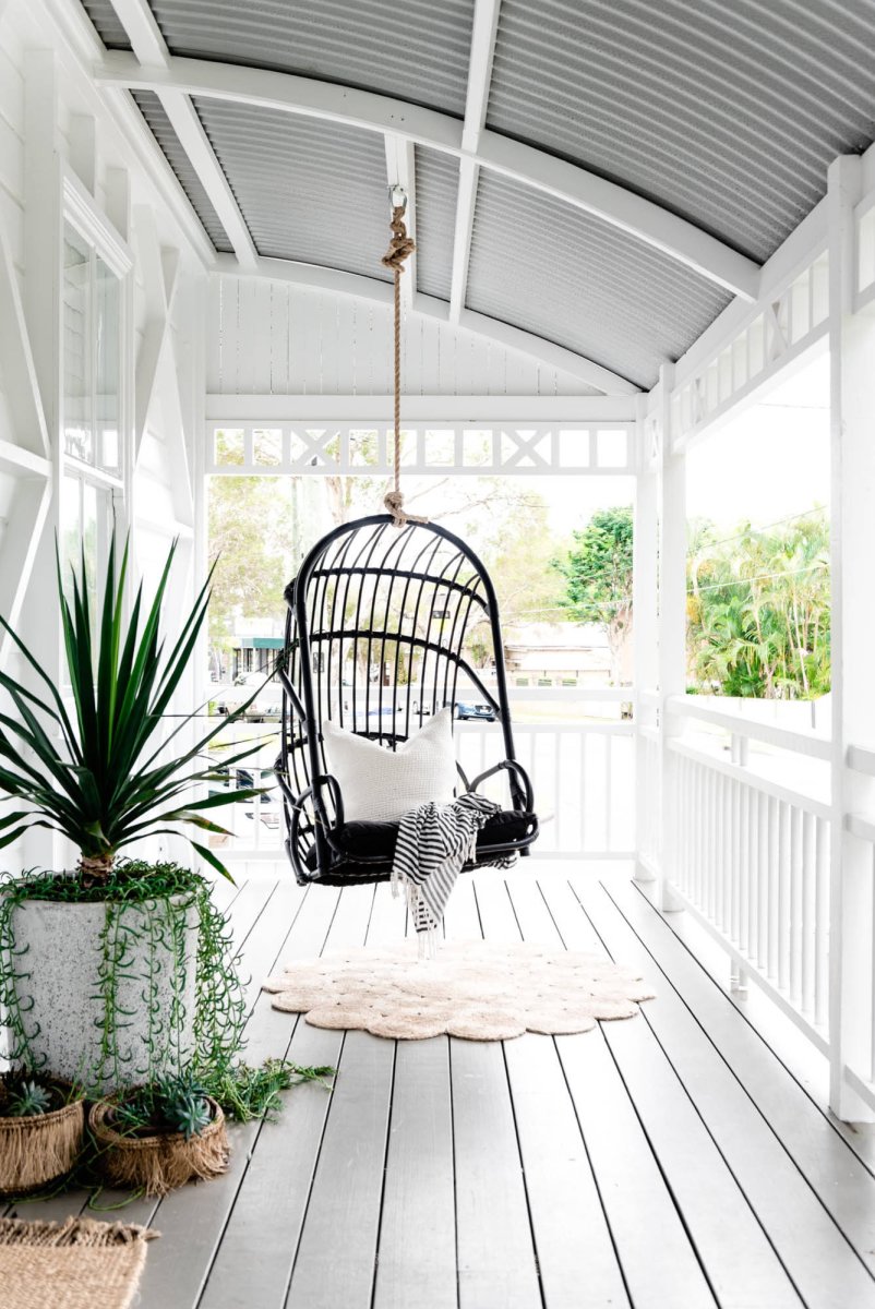 Подвесное кресло на веранде