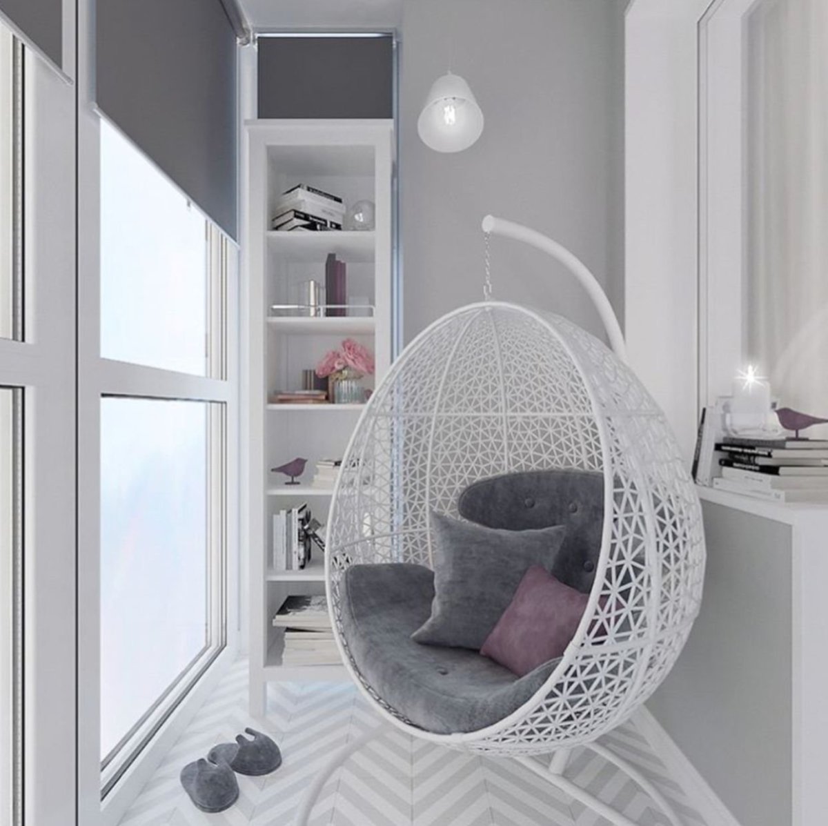 Подвесное кресло в эркер спальни