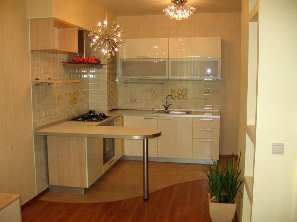 Кухня ниша с барной стойкой