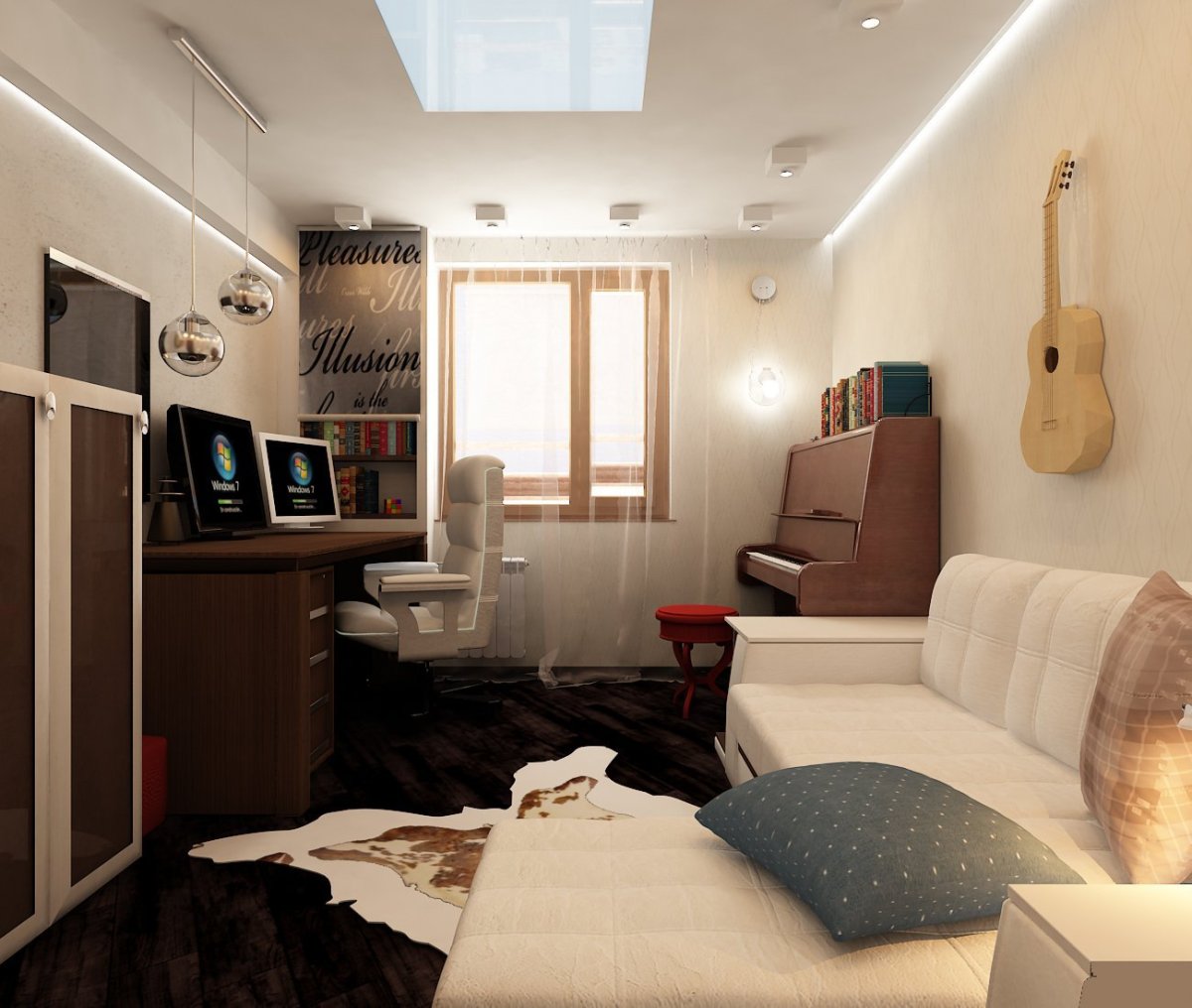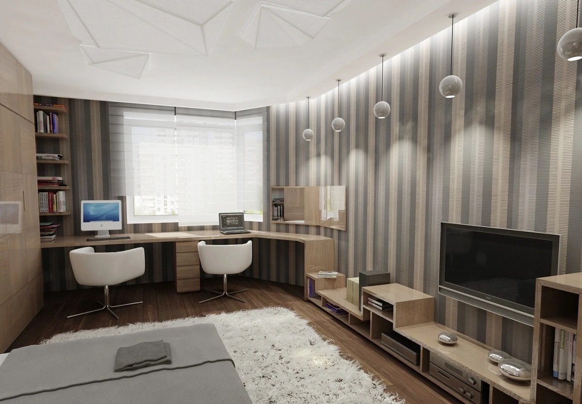 Гостиная спальня кабинет в одной комнате