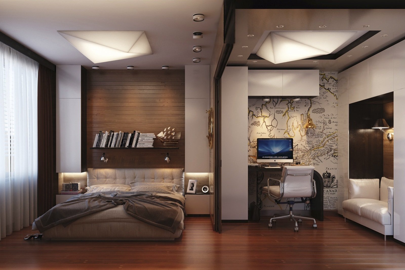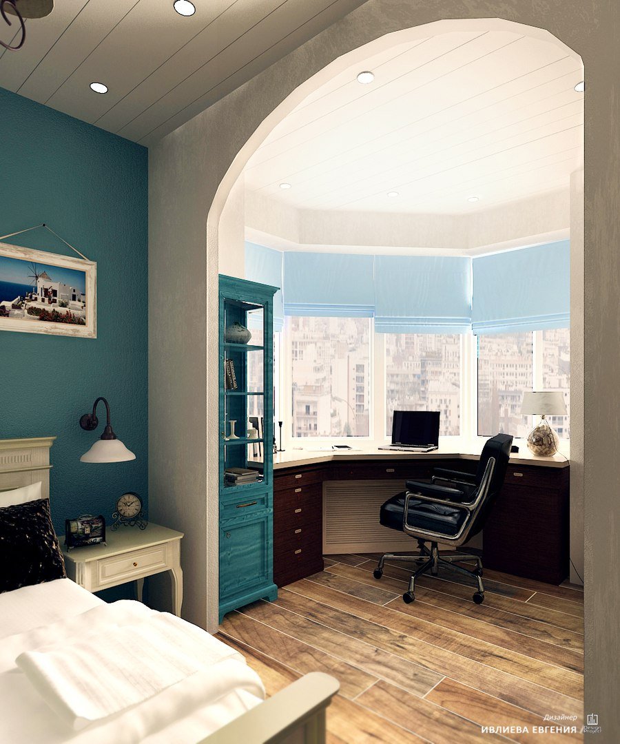 Спальня и кабинет в одной комнате 15кв.м