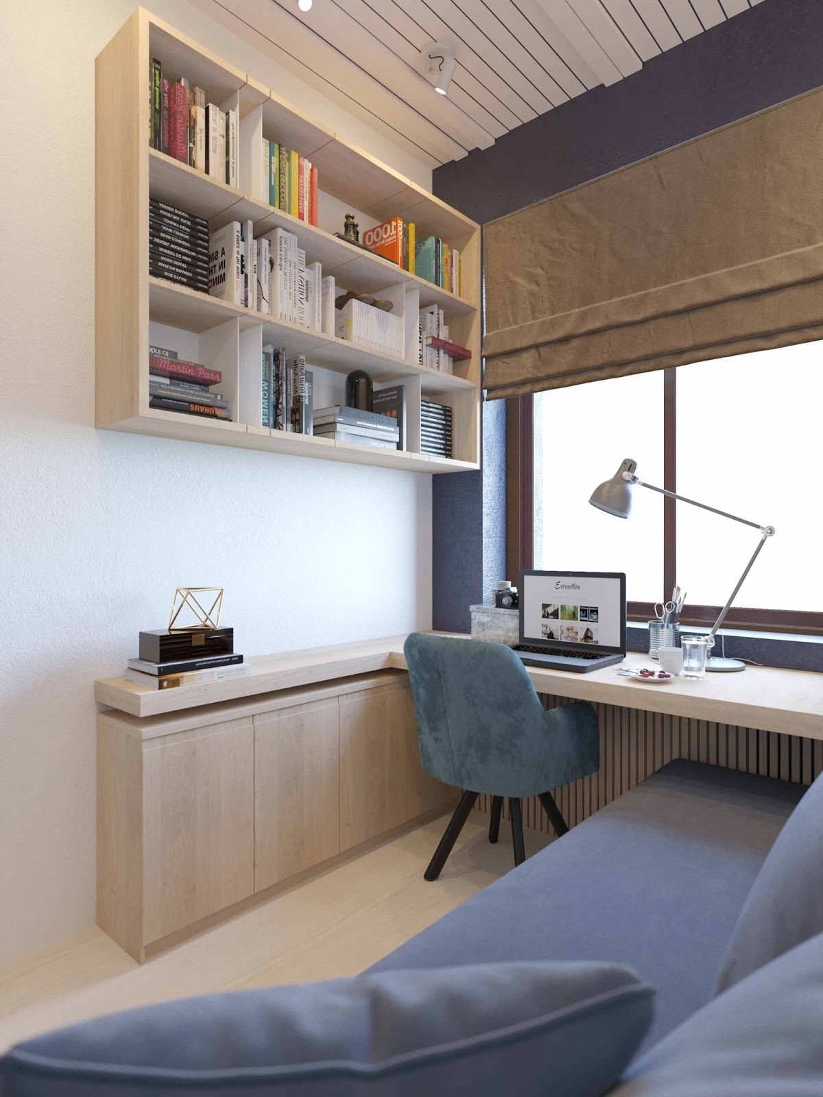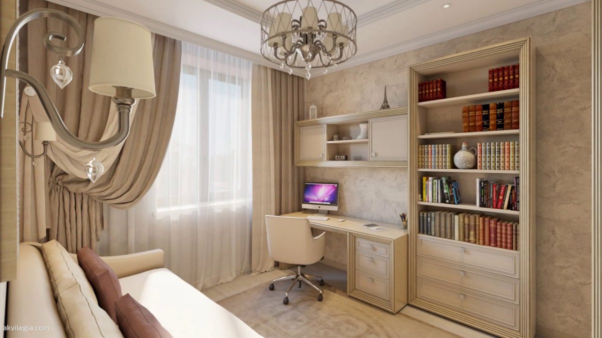 Интерьер маленькой спальни кабинета