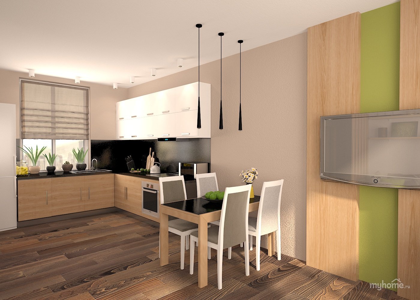 Кухня-гостиная в трешке