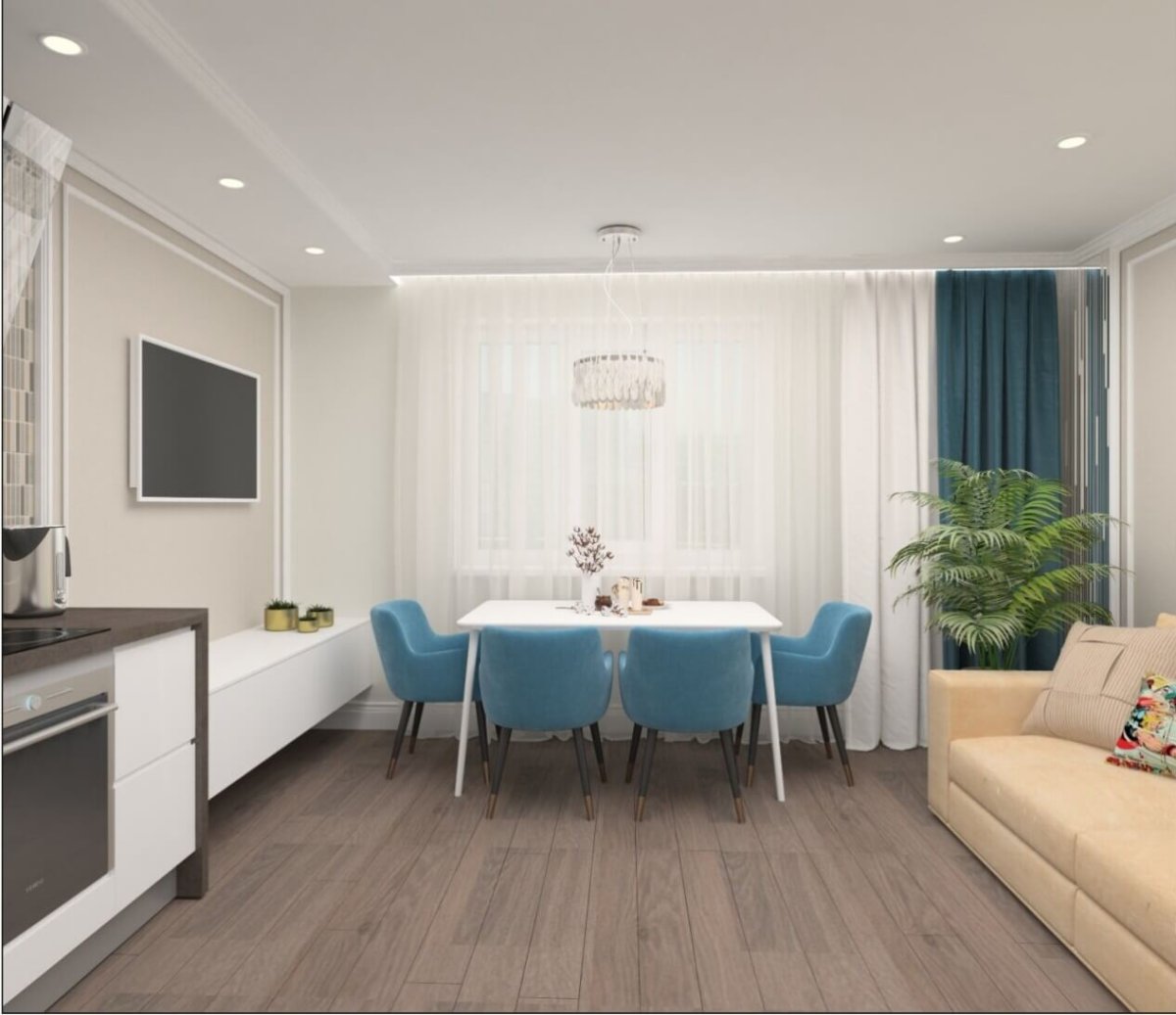 Кухня-гостиная 20 кв.м евродвушка