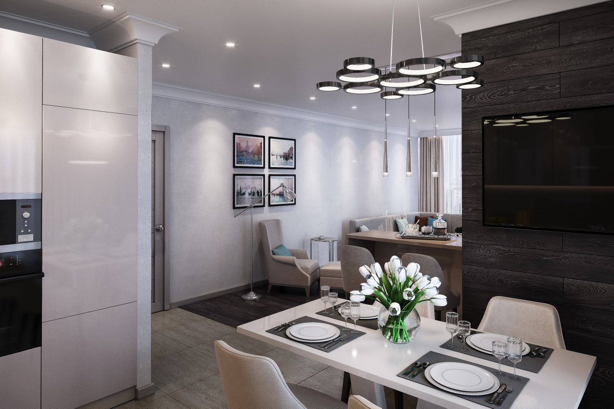Кухня гостиная в двухкомнатной квартире