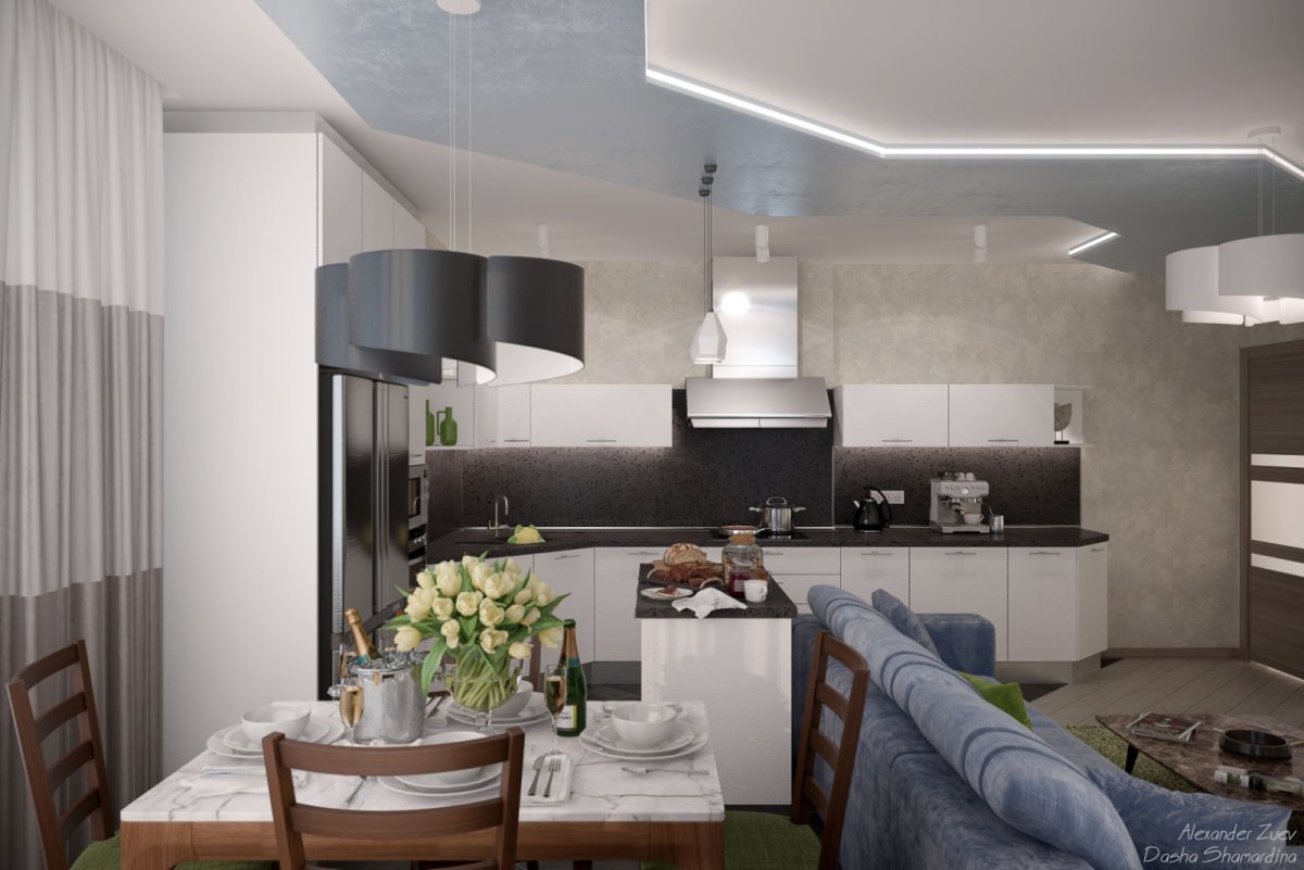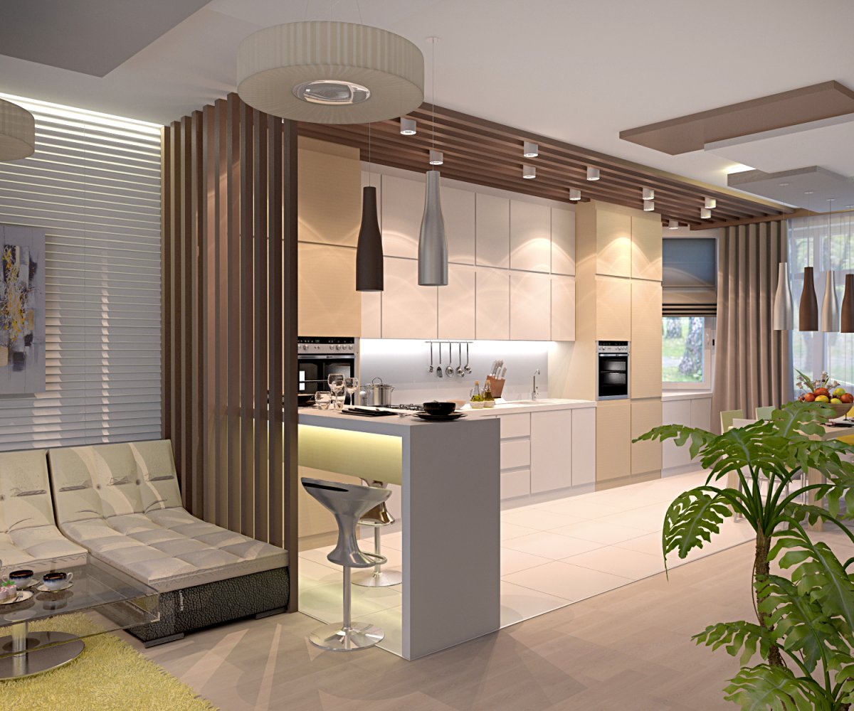 Готовые дизайн проекты кухни гостиной
