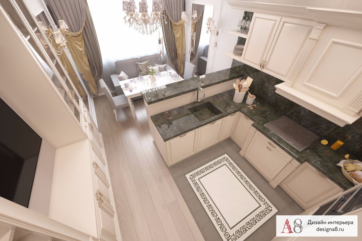 Кухня студия в трехкомнатной квартире
