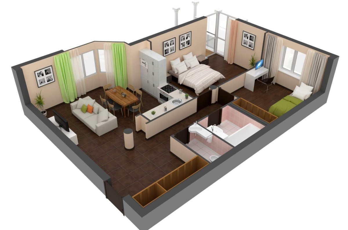 Планировка евротрешки с кухней-гостиной