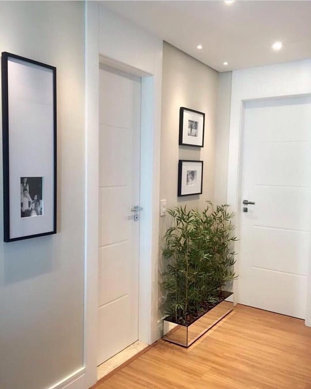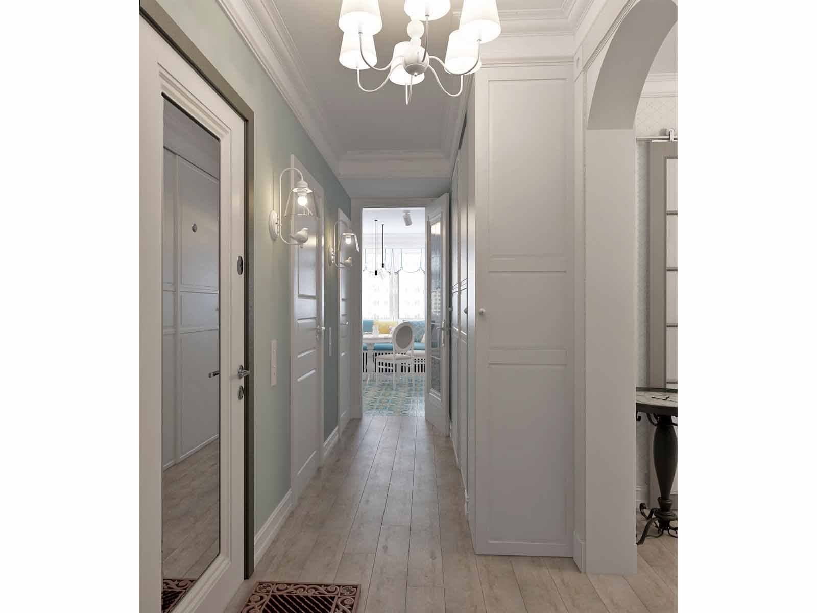 Узкая прихожая с белыми дверями