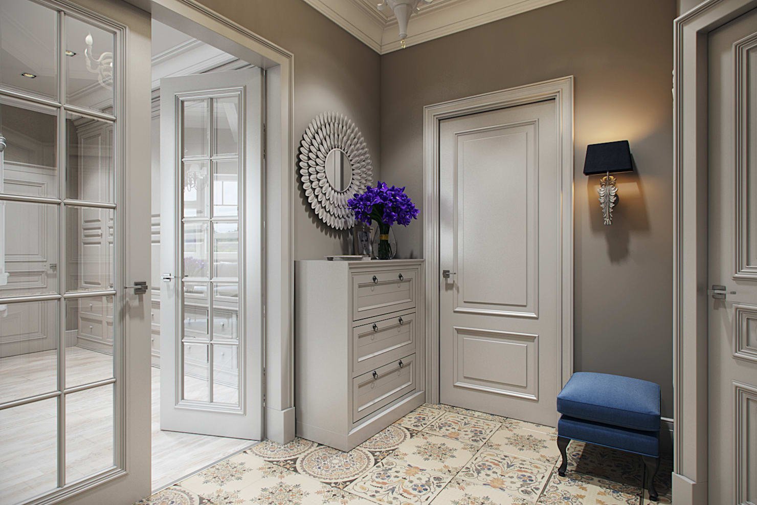Прихожая с белыми дверями