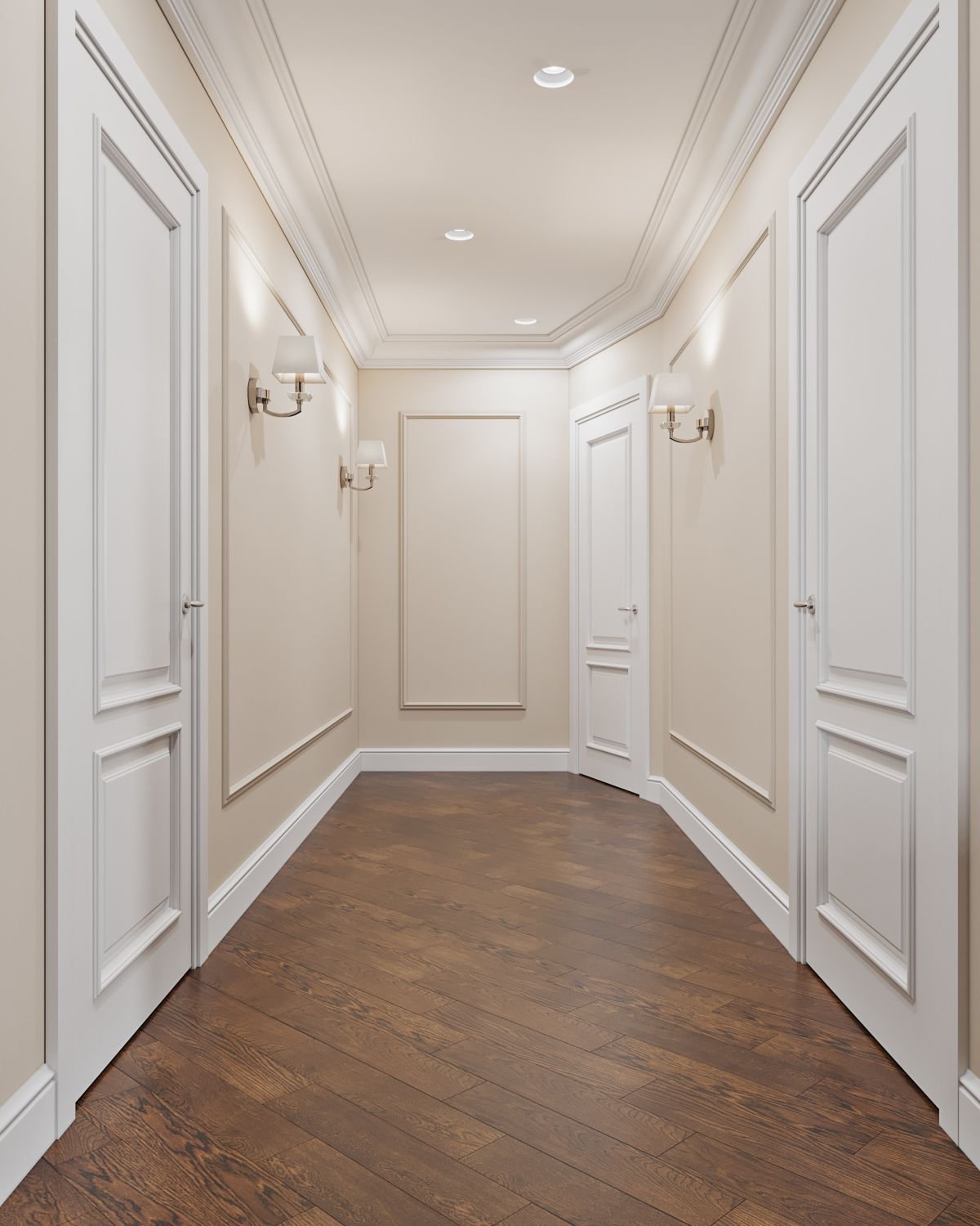 Бежевые стены и белые двери