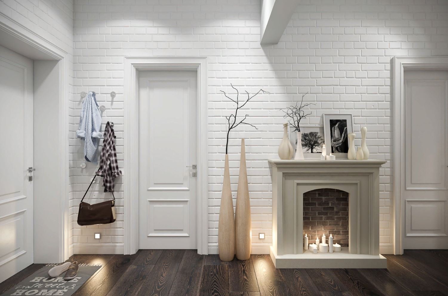 Белый кирпич в прихожей