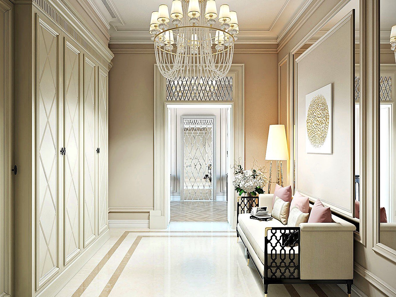Прихожая в стиле арт деко в светлых тонах