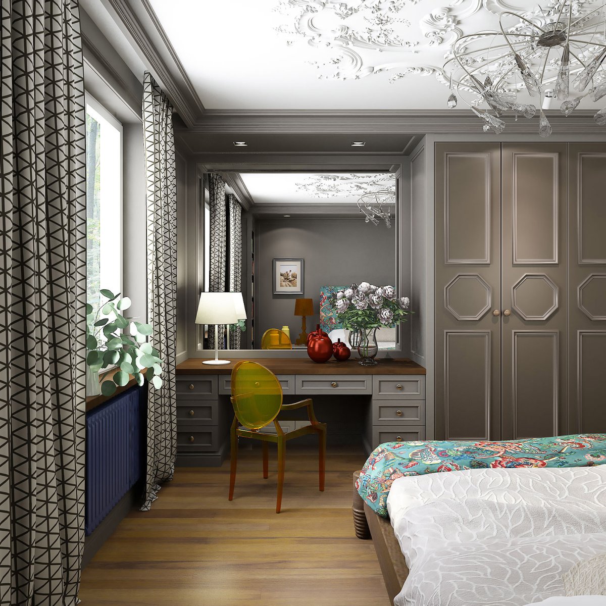 Крутой дизайн спальни сталинка