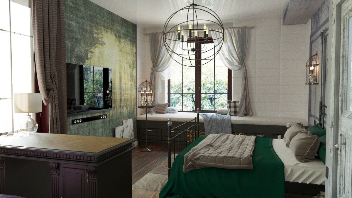 Спальня 12кв м в стиле Кантри