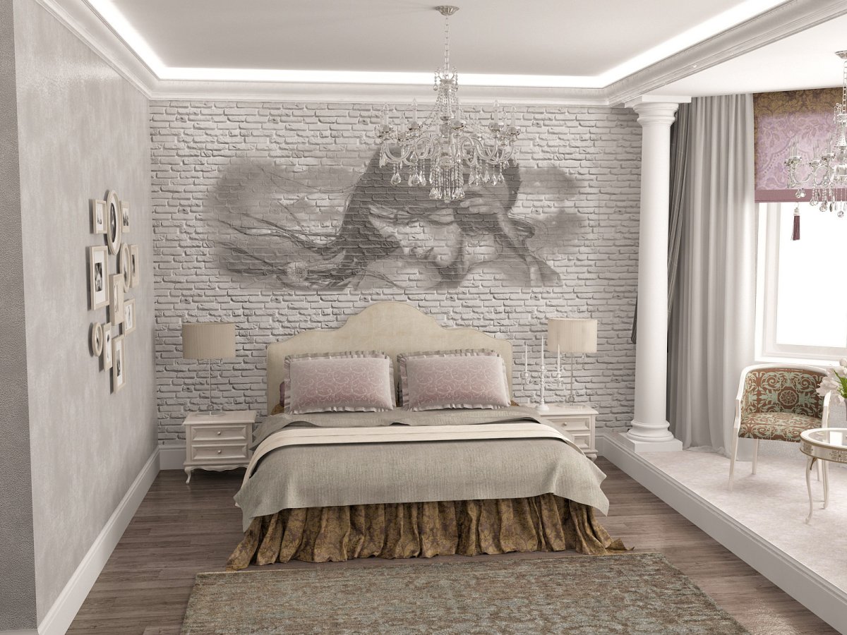 Кирпич в интерьере спальни