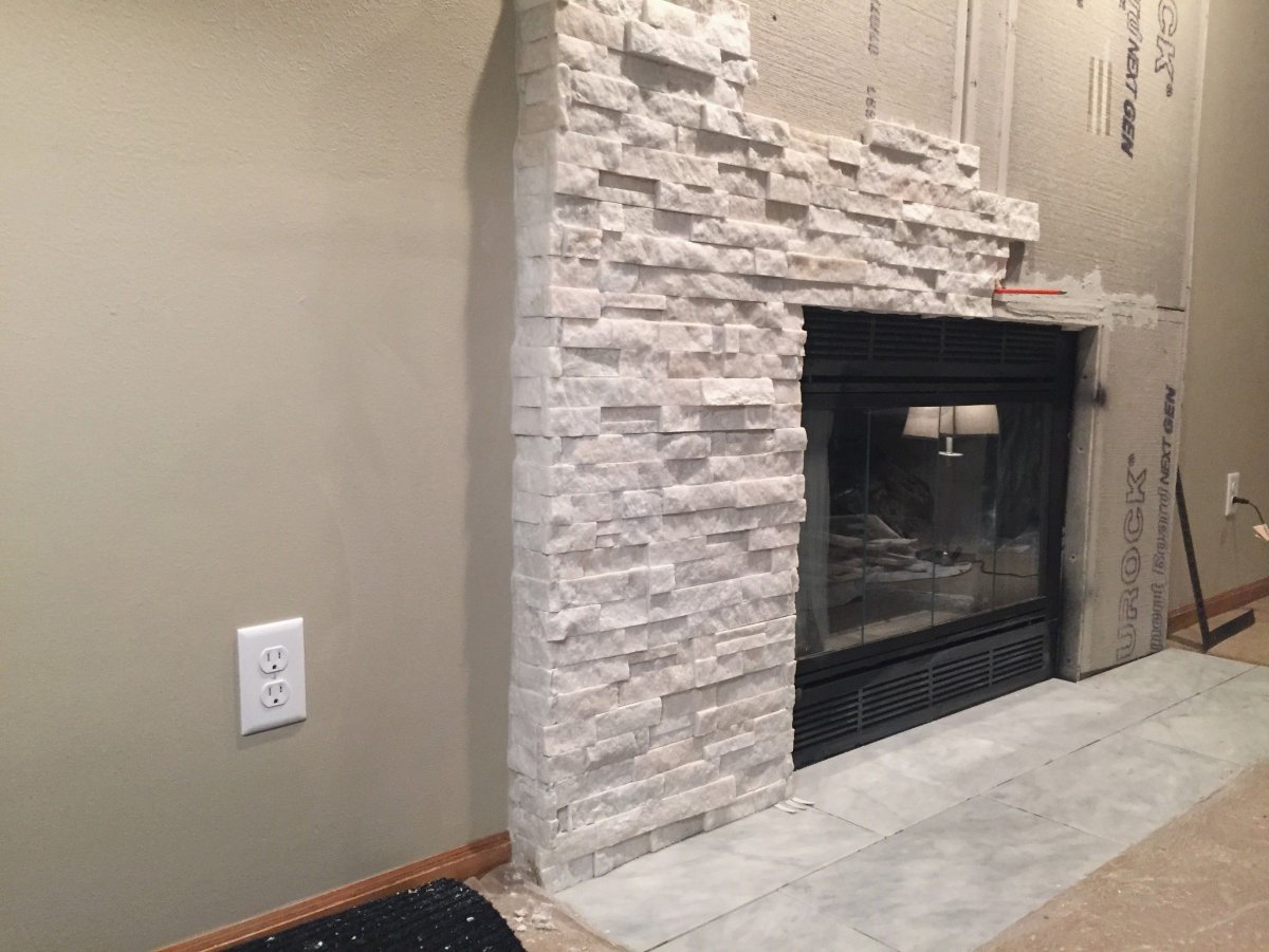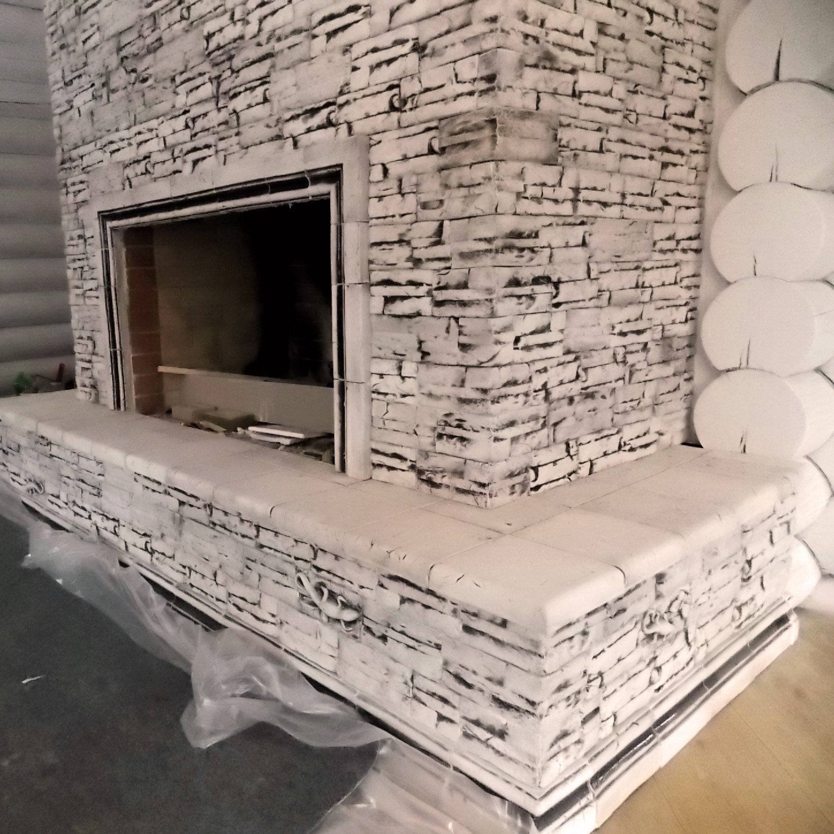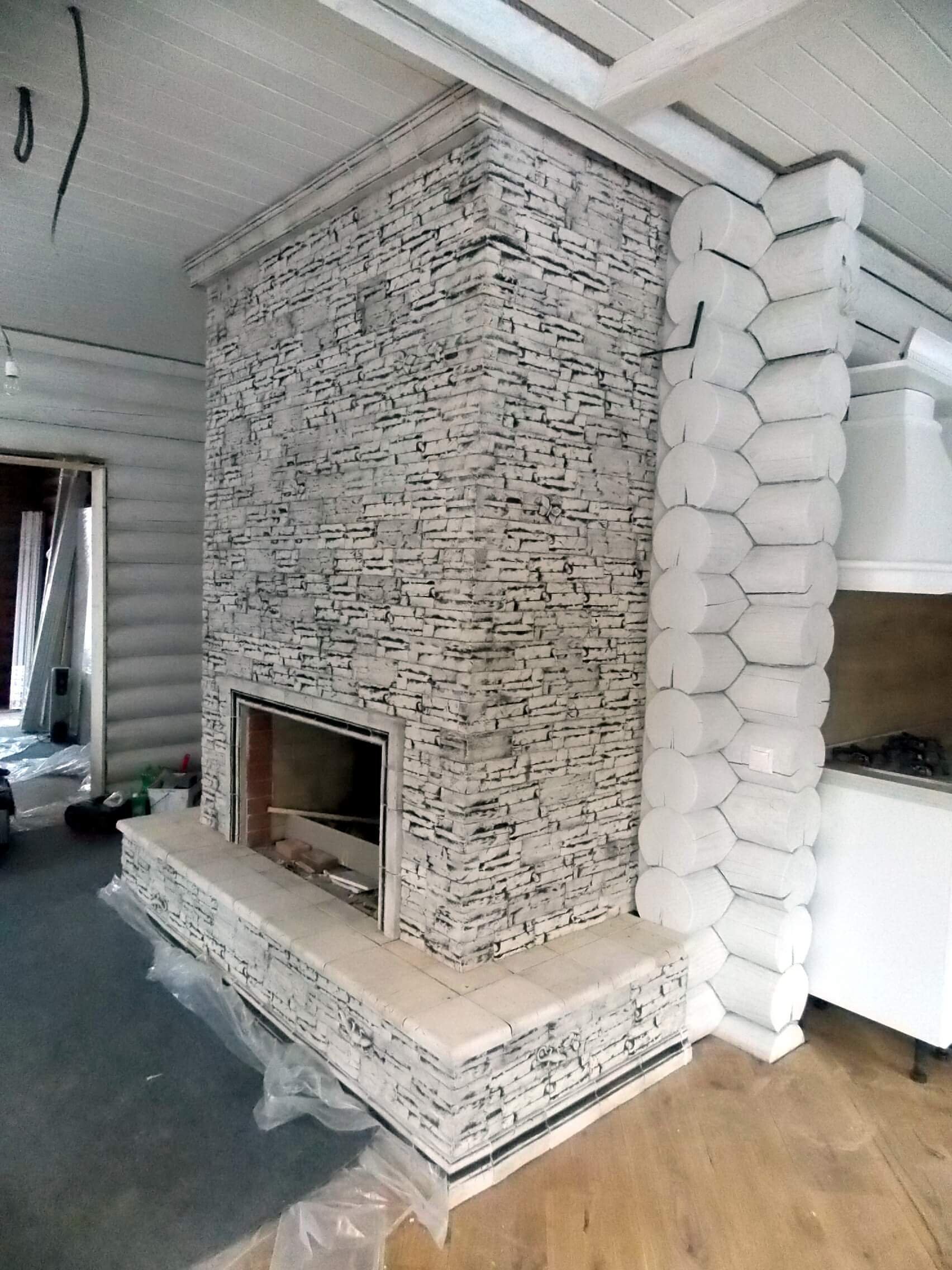 Отделка камина искусственным камнем