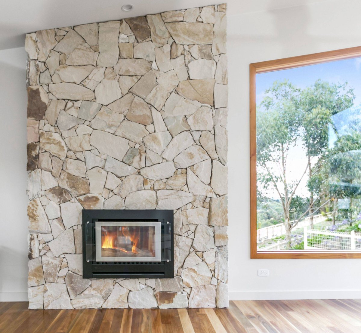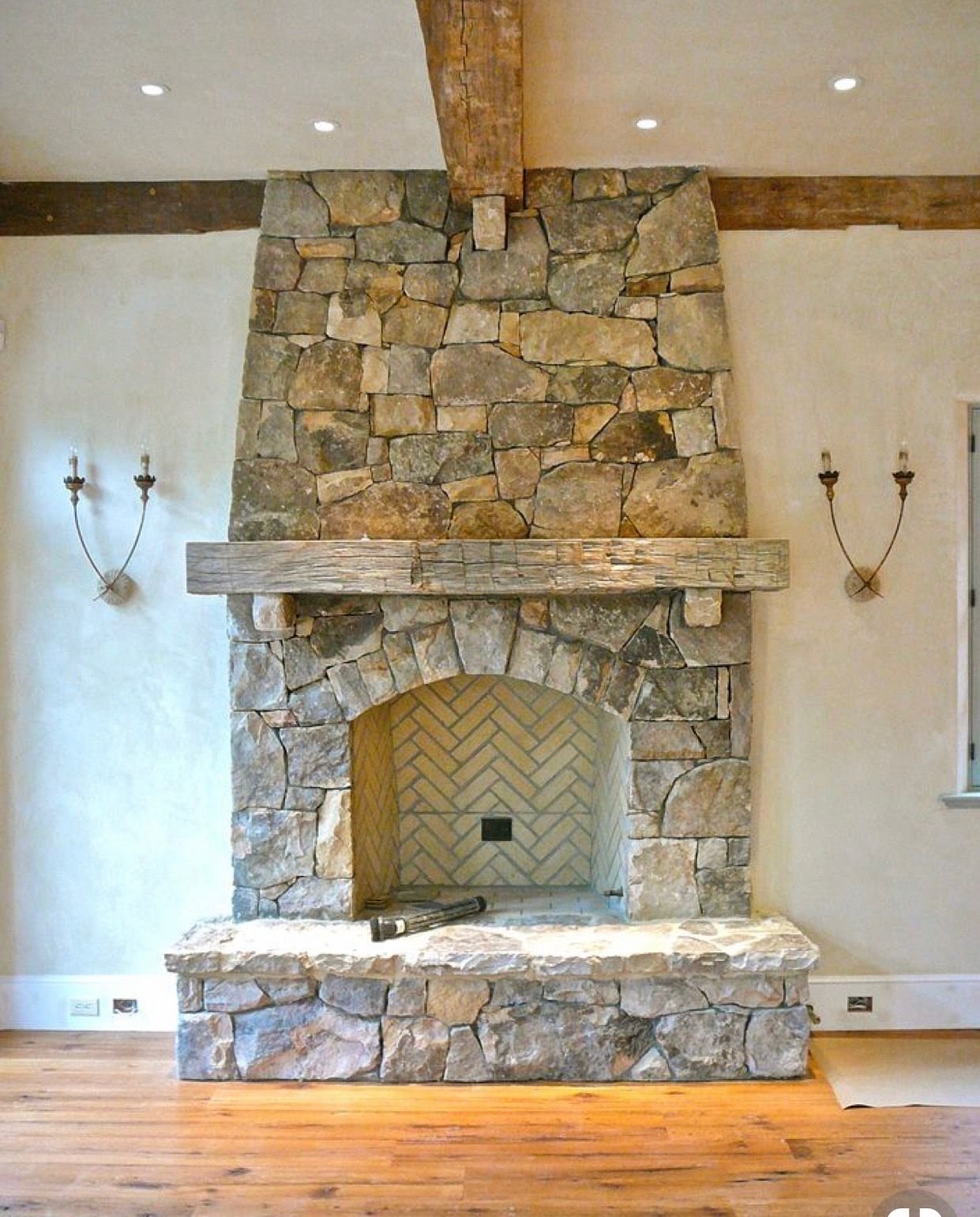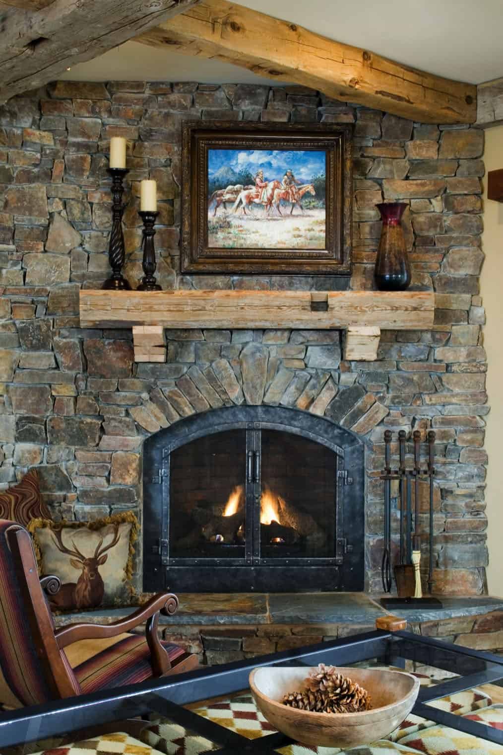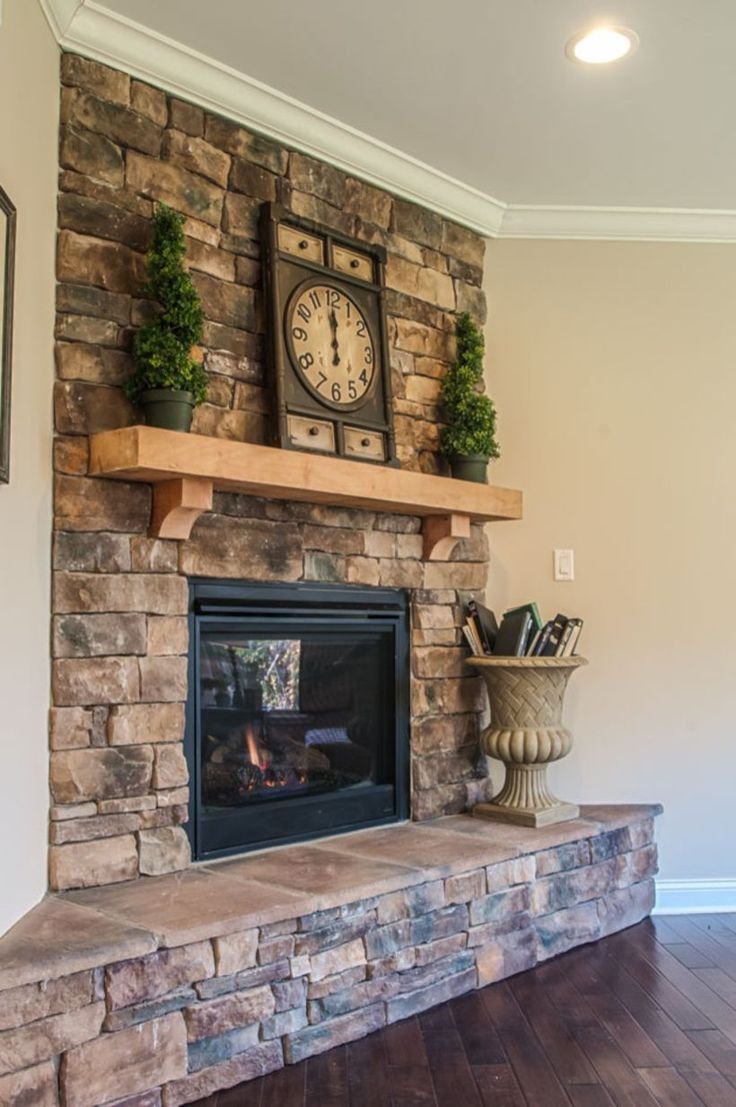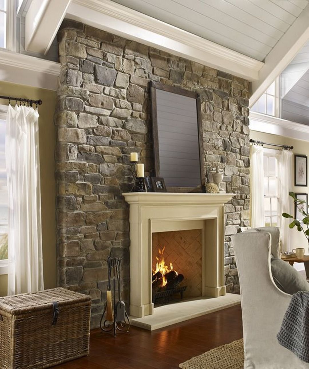 Отделка стены камнем за камином
