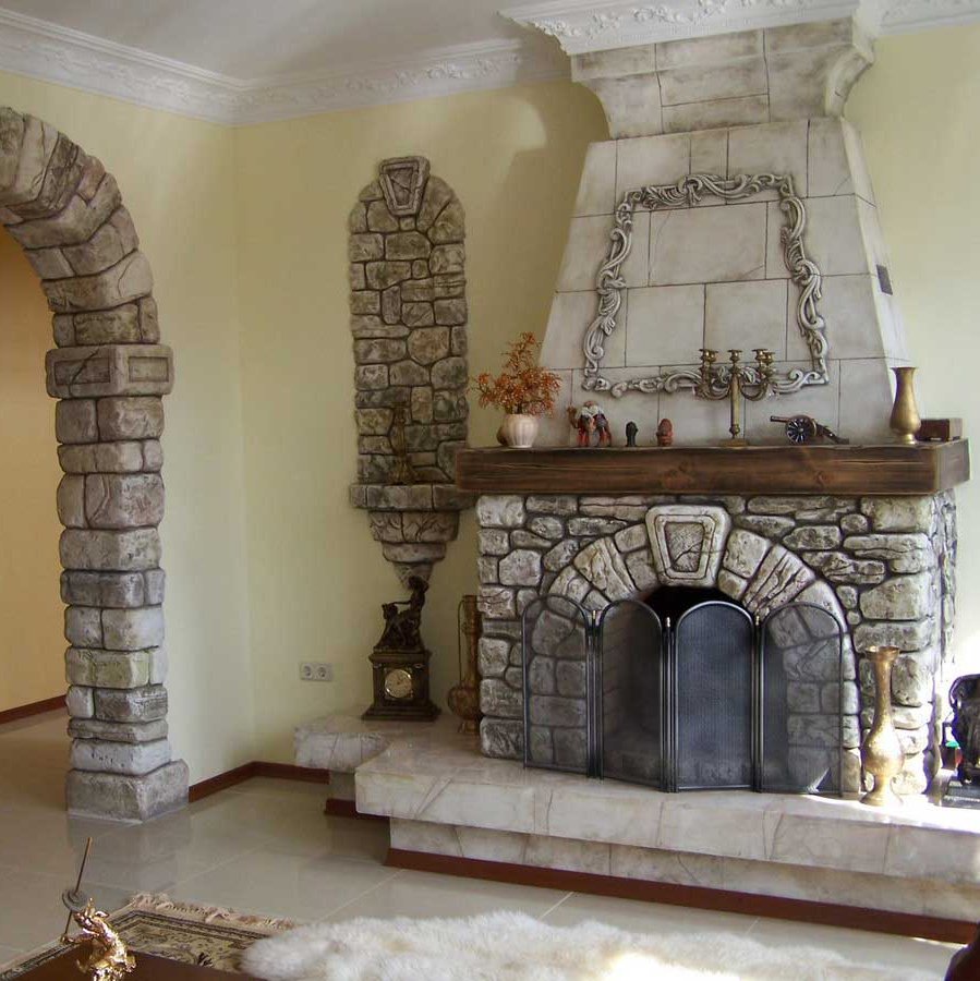 Отделка каминов искусственным камнем