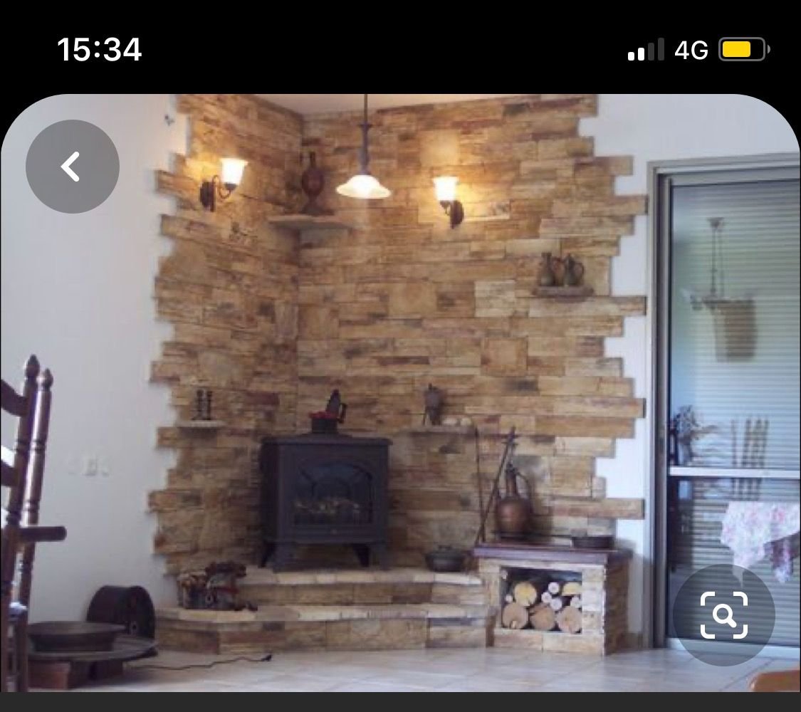 Отделка стены возле камина
