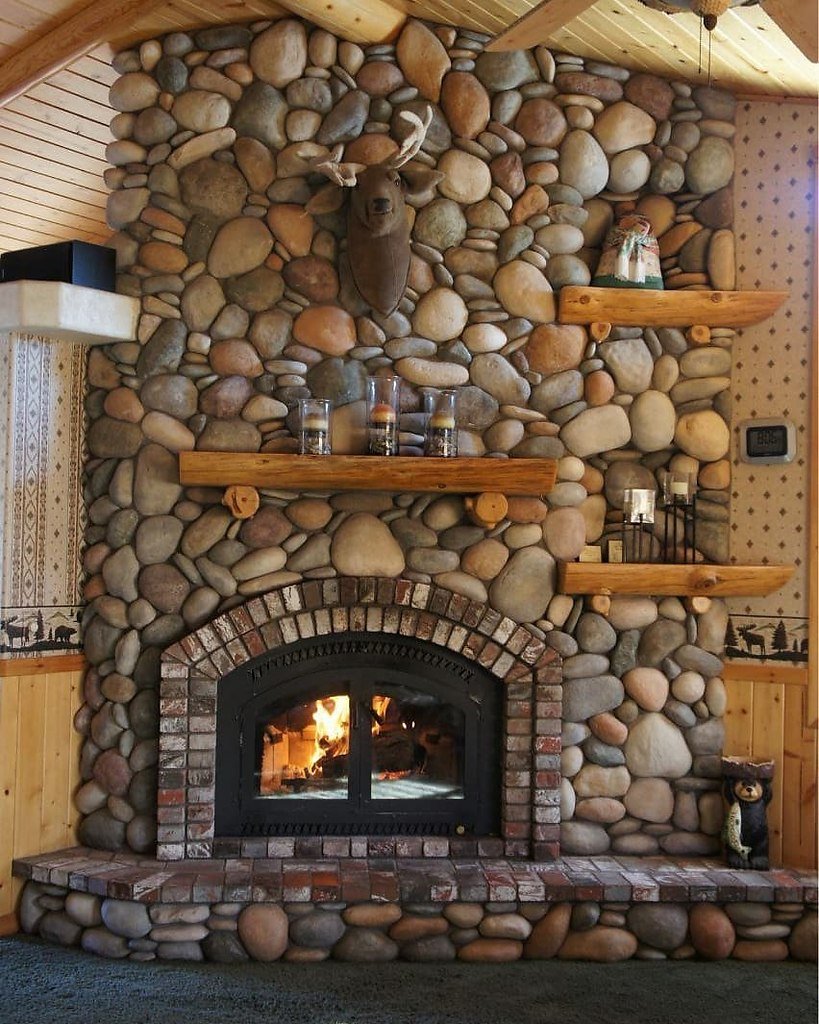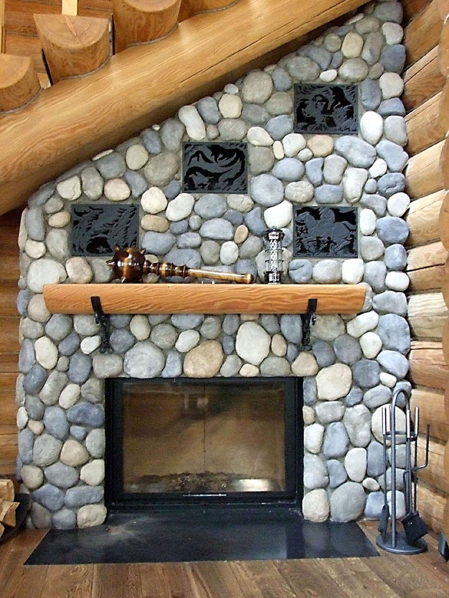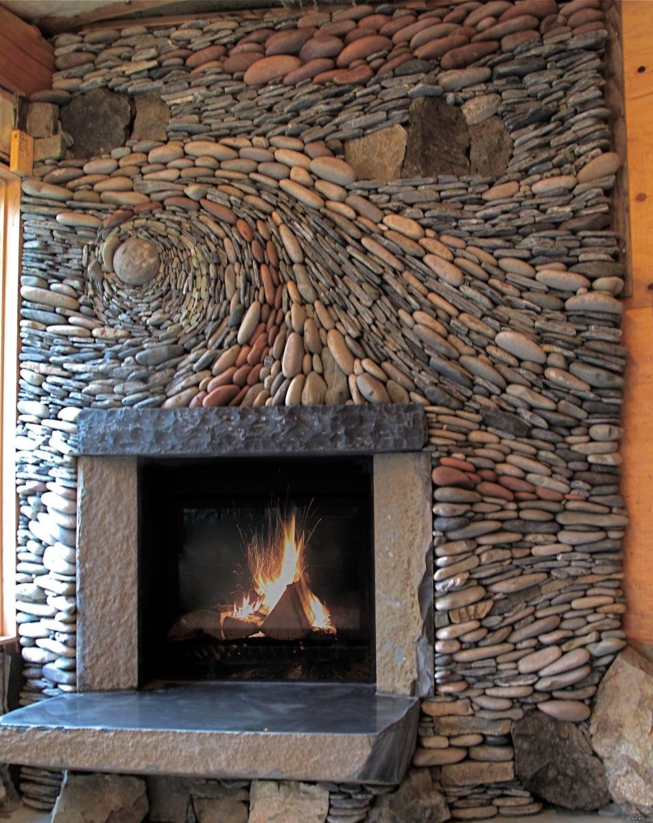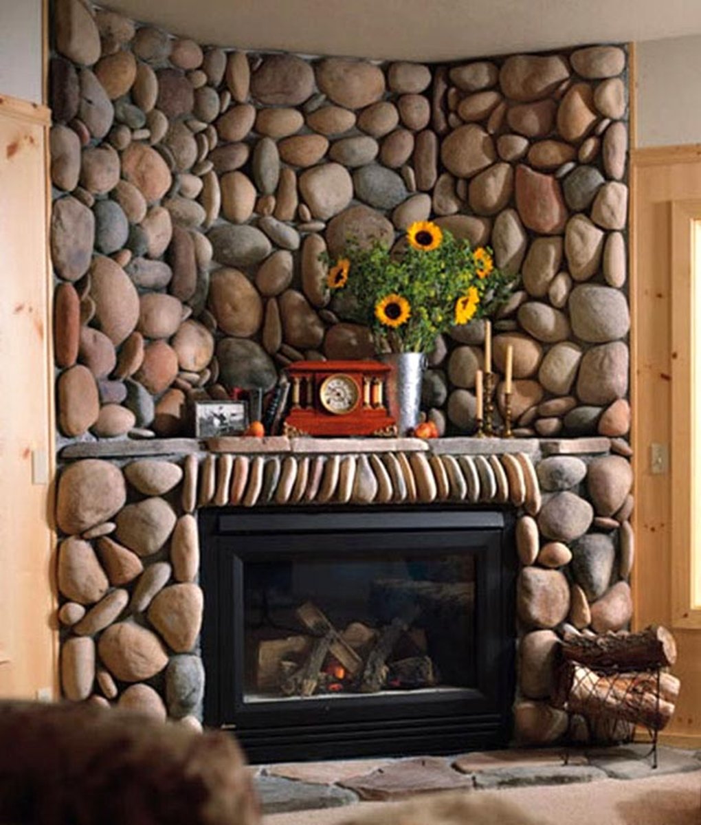 Камин из речного камня