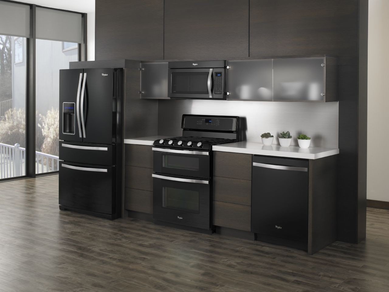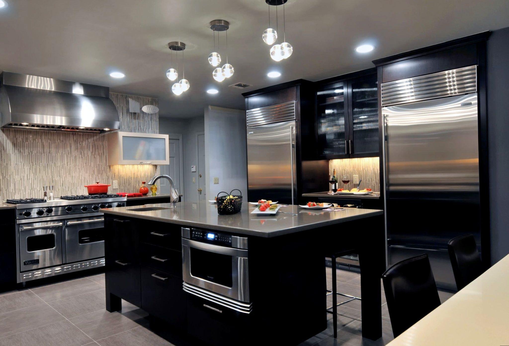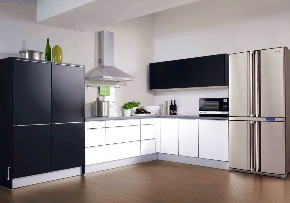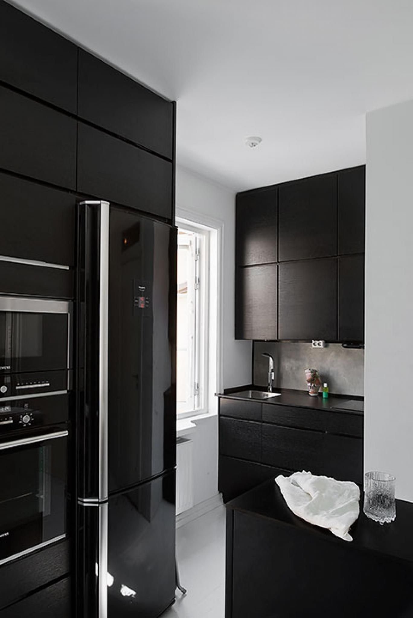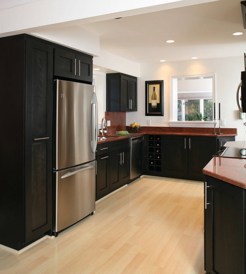 Кухни с черным холодильником