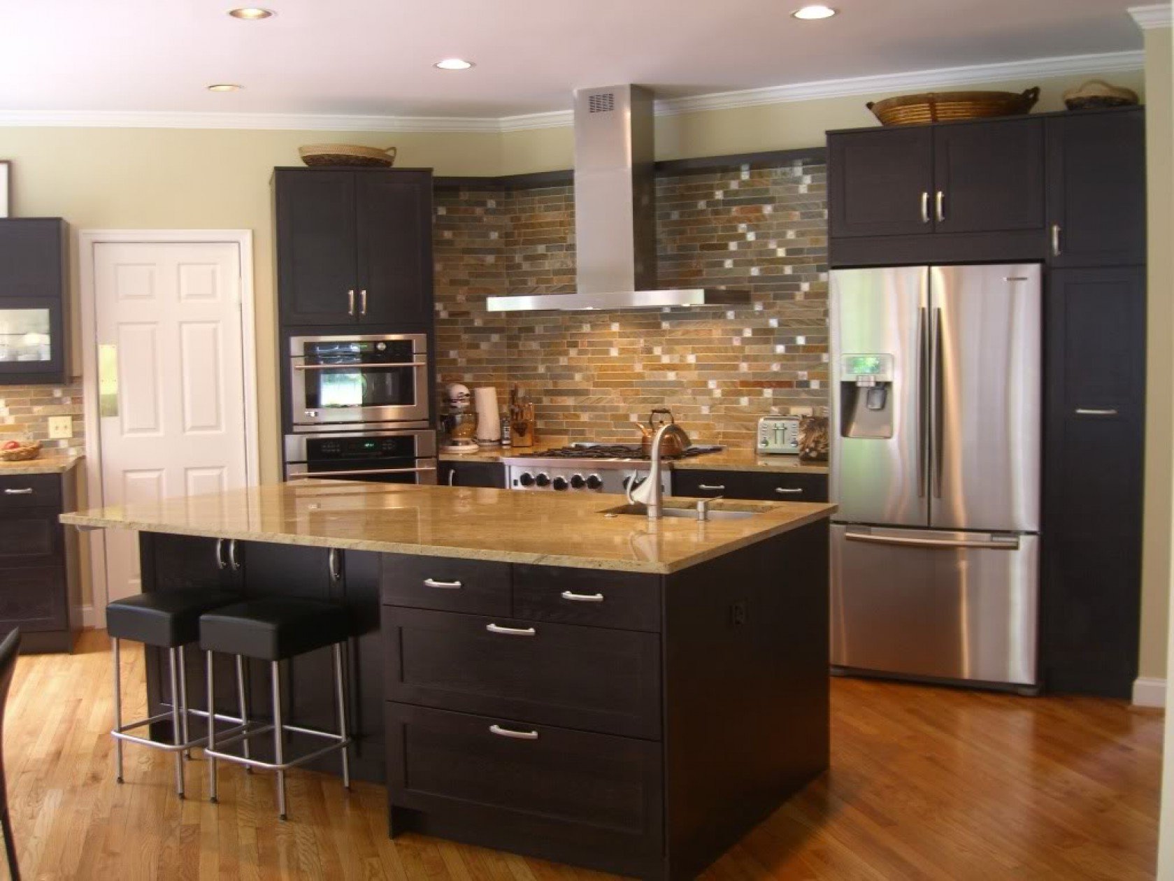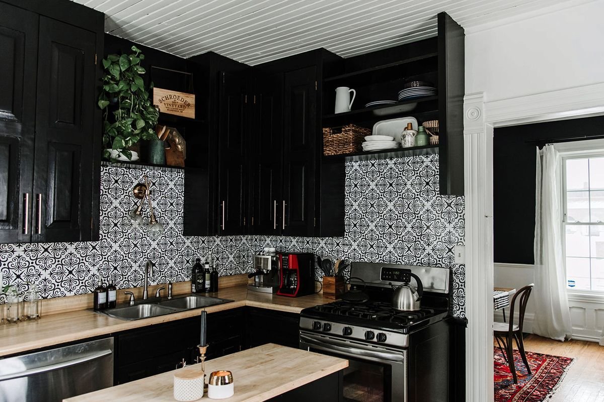 Черные обои на кухне в интерьере