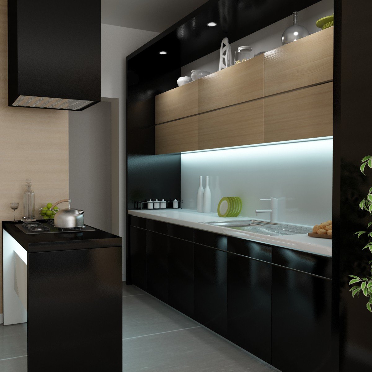 Черная кухня без верхних шкафов