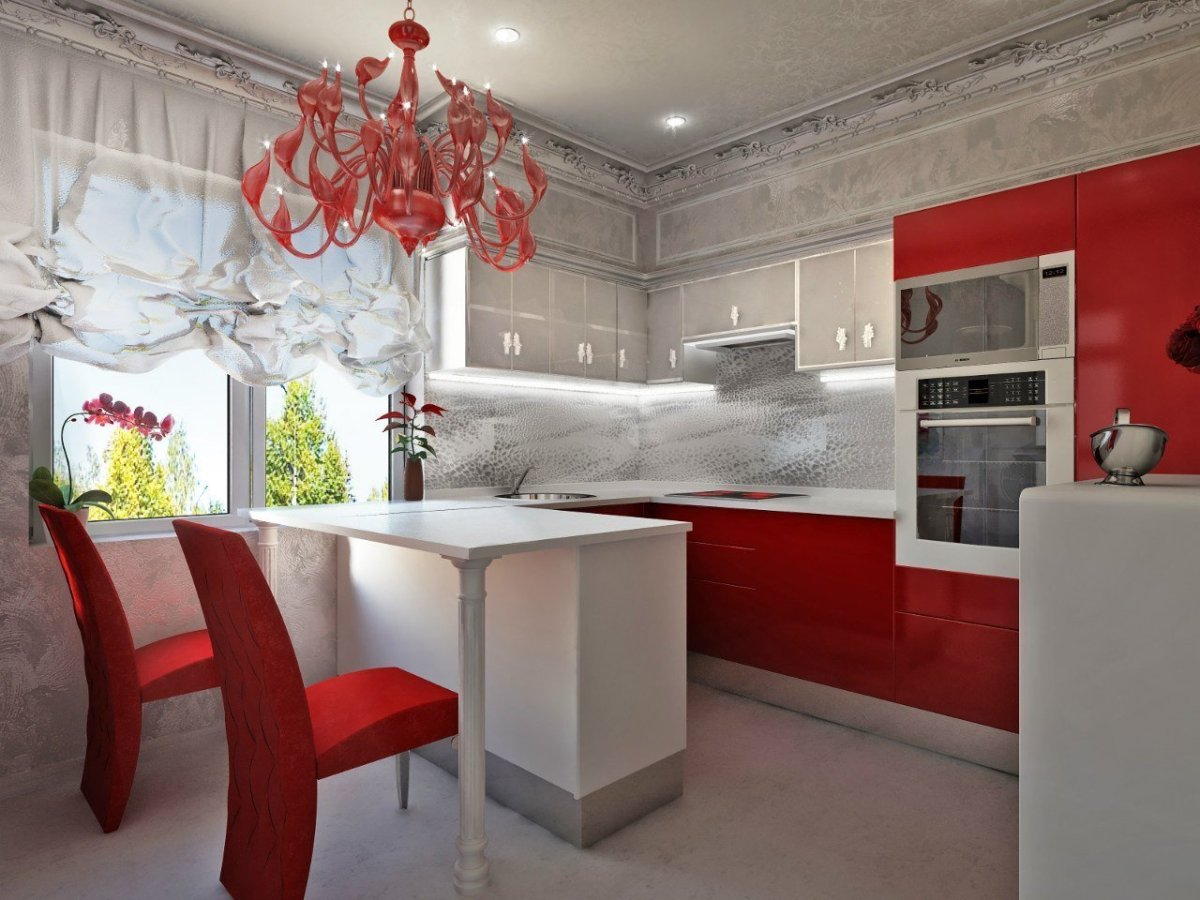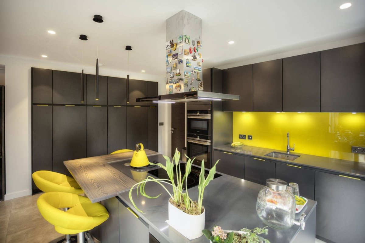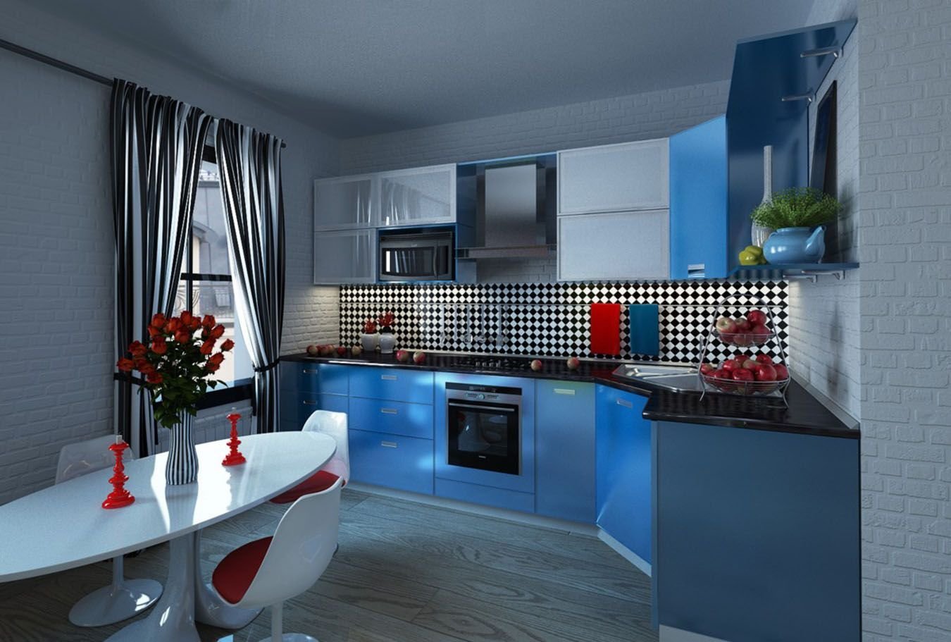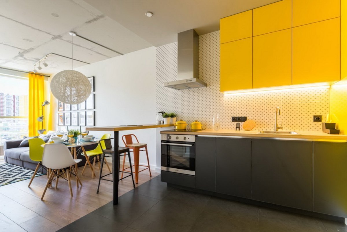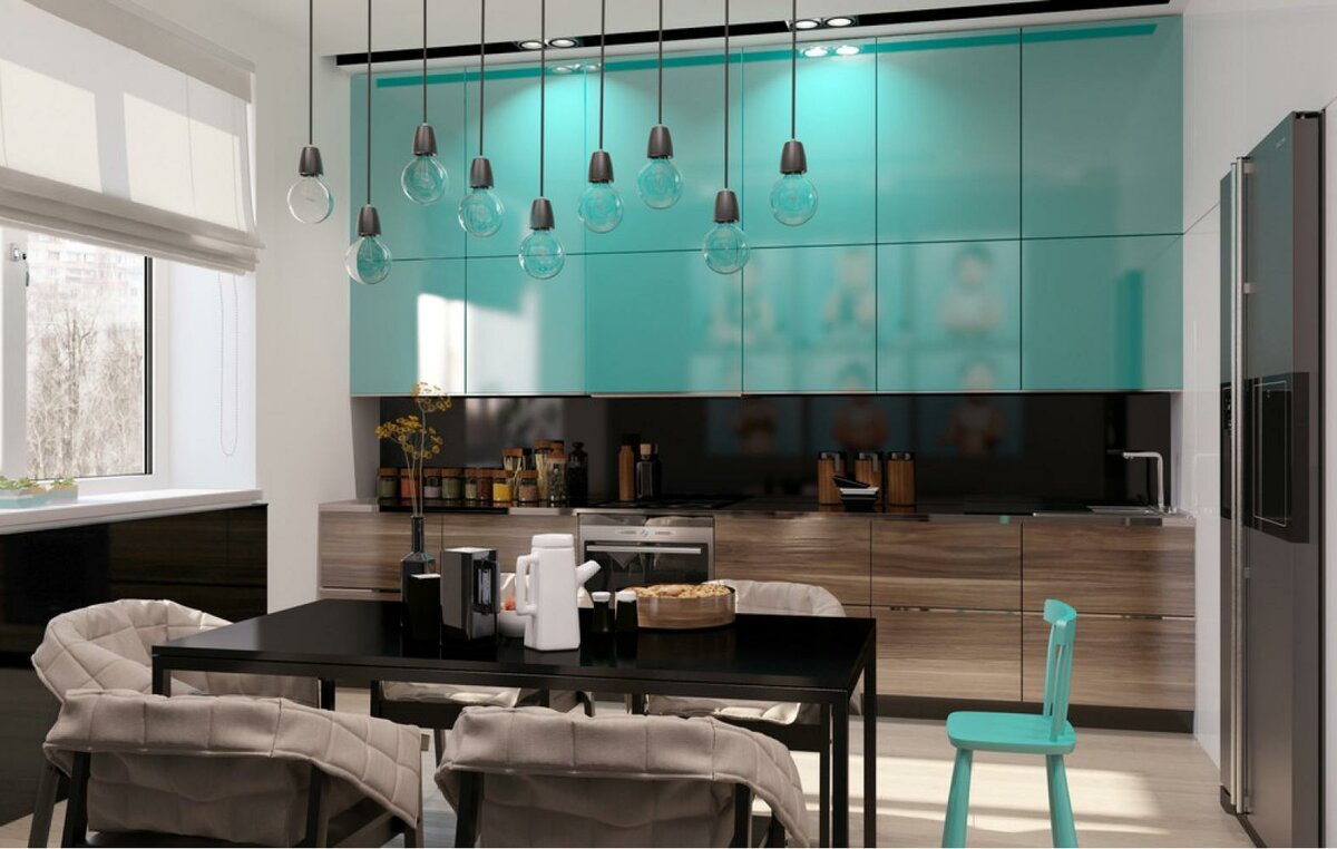 Кухня в коричнево-бежевых тонах с яркими акцентами