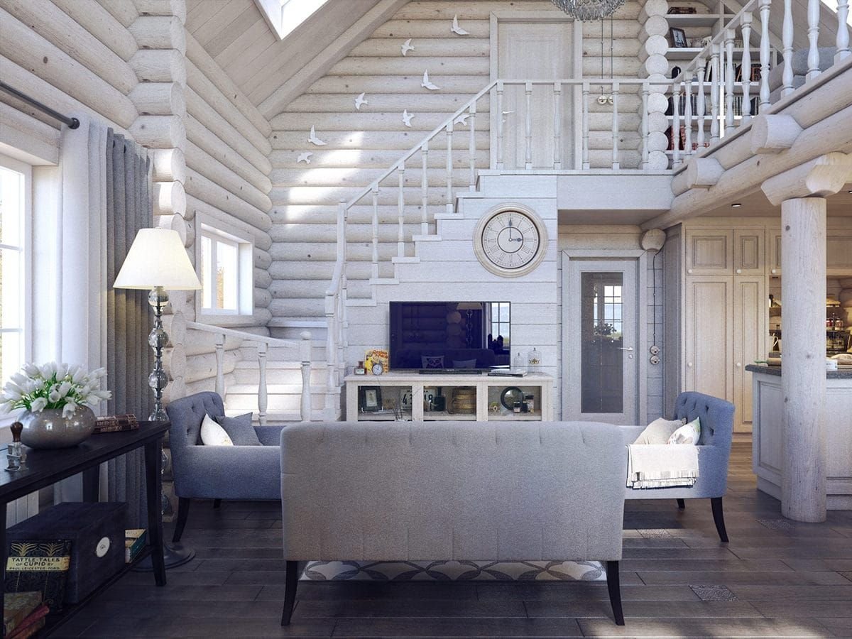 Скандинавский интерьер дома из бруса
