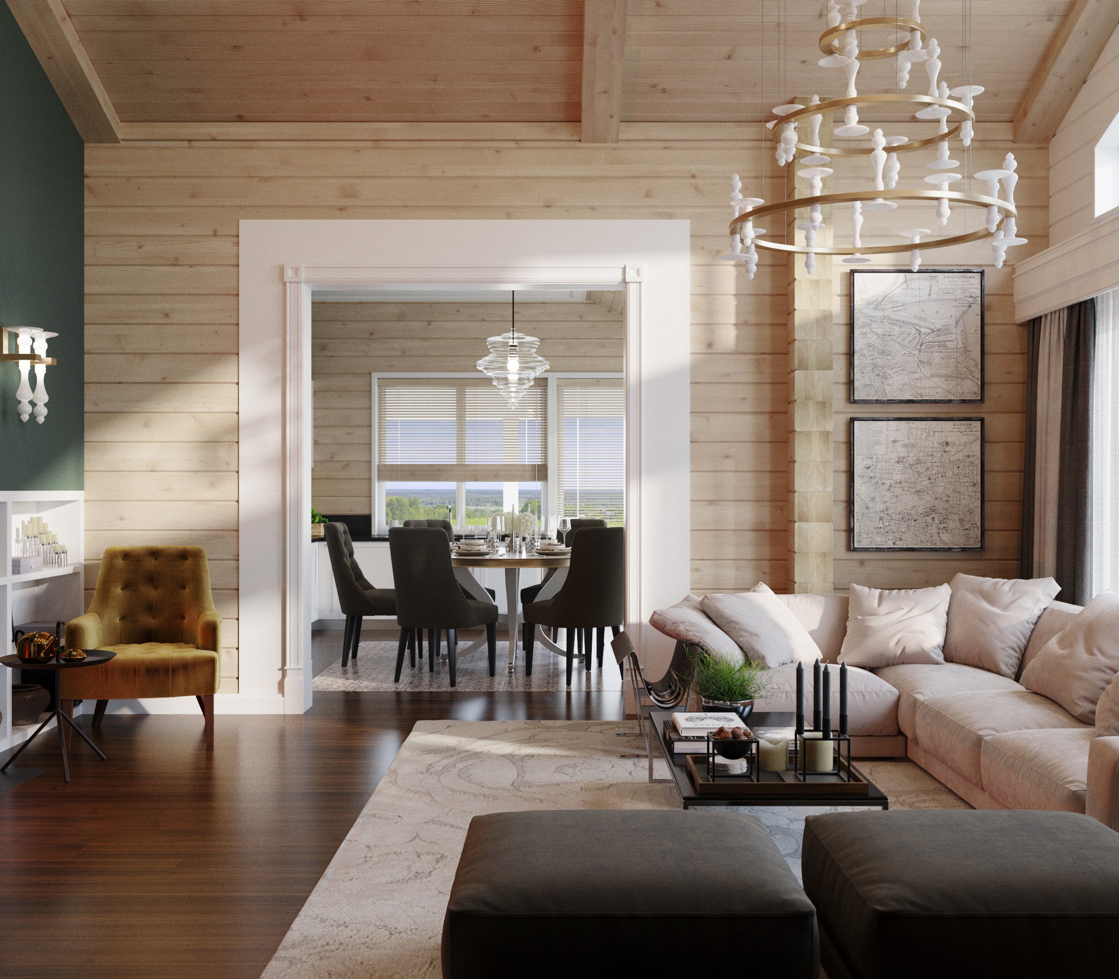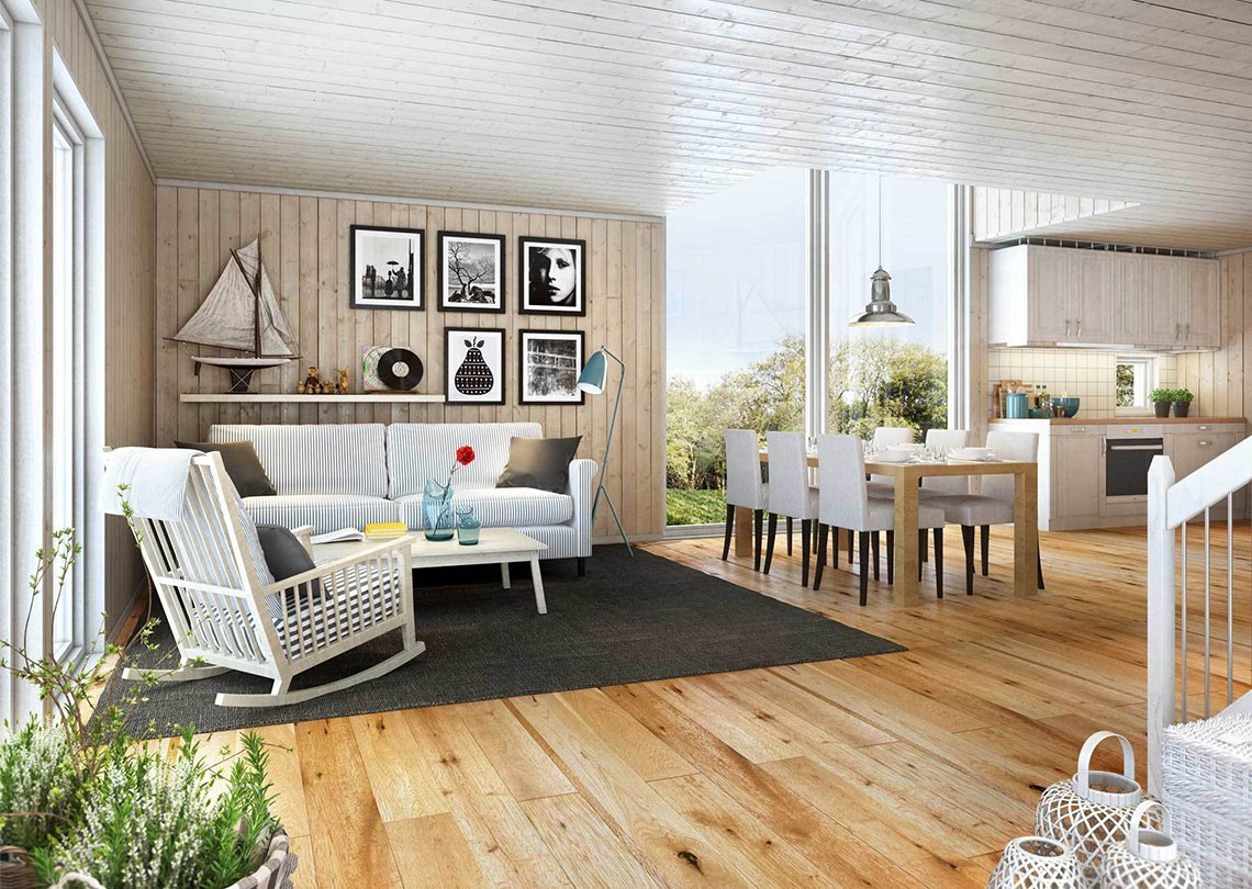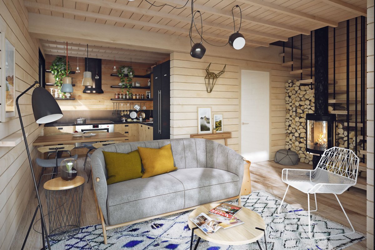 Интерьер в скандинавском стиле в деревянном доме