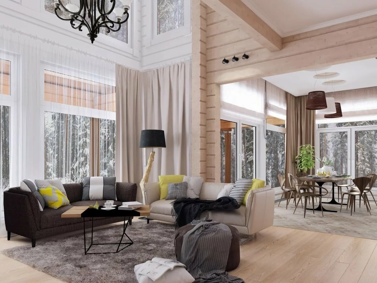 Интерьеры домов из бруса в скандинавском стиле